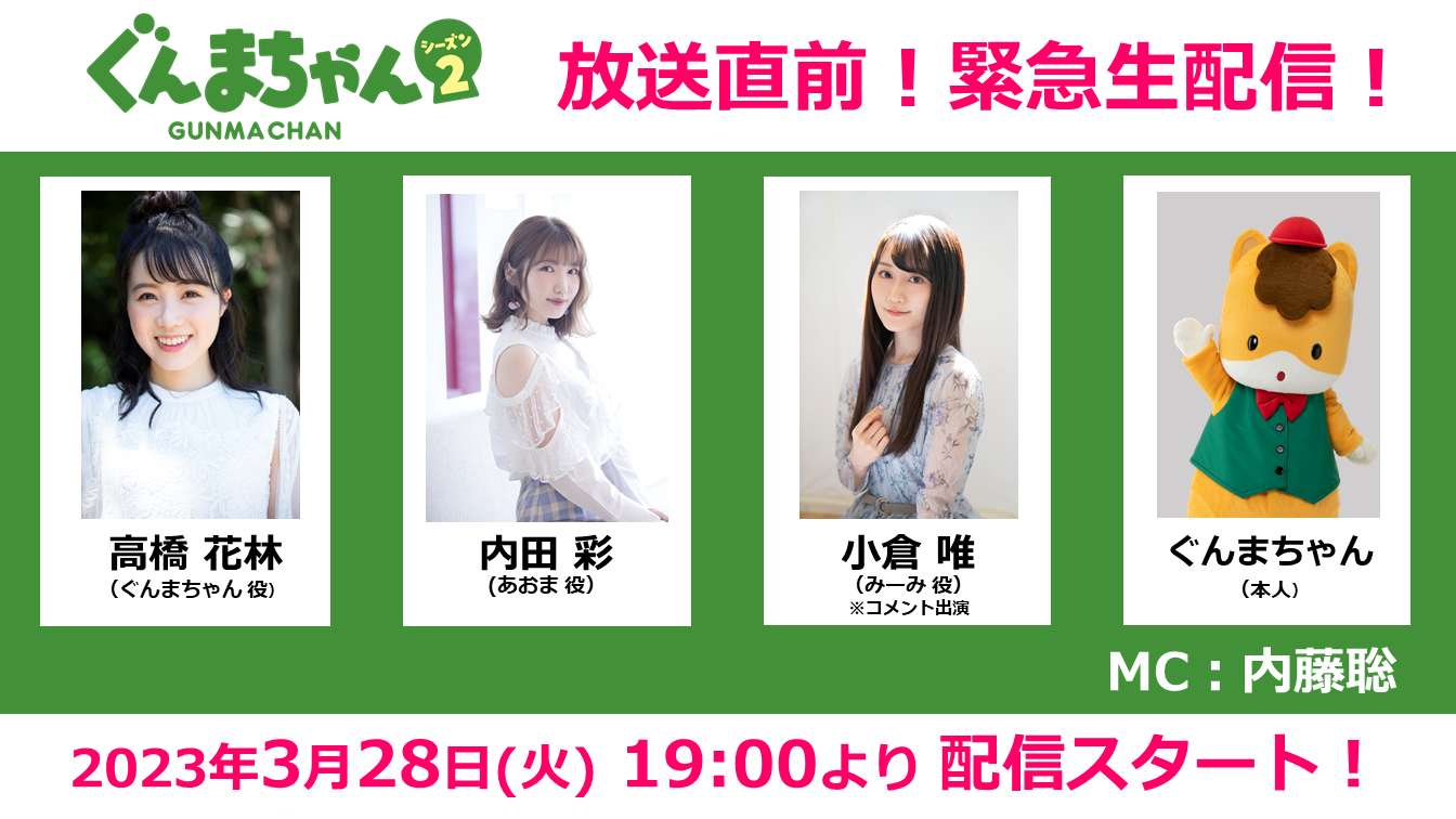 4月からのシーズン2の放送を間近に控え、メインキャストとぐんまちゃんが登場する緊急生配信の開催が決定しました!