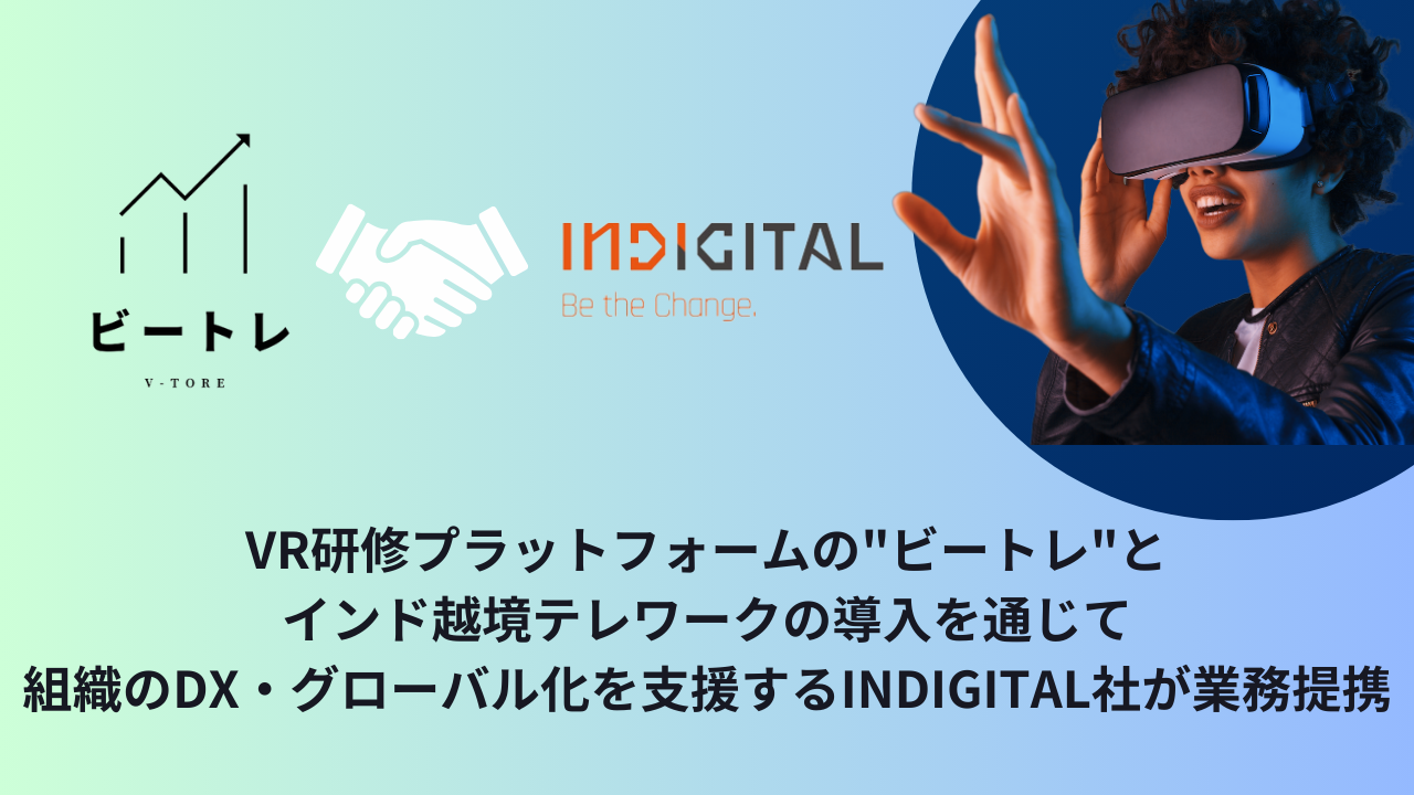 INDIGITAL社は、これまで少子高齢化が深刻さを増し国内の人材不足という厳しい環境の変化の中で、日本企業がインドに現地法人を設立することなくインド人材をリモートで雇用できる越境テレワーク・EORの導入サポートや、現地法人を設立後にインド人材を転籍させることでスムーズなインド進出の実現に取り組んできました。その中で、インド事業の立ち上げフェーズにおける人材育成、トレーニングの課題について相談を受けることがありました。今回、それらのお困りごとを持つクライアントに対して、インド国内に開発チームを持つPotlatch社と共同でVRコンサルティング及びVRトレーニングの”ビートレ”を提供することで、課題解決の一助を担えたらと考えております。