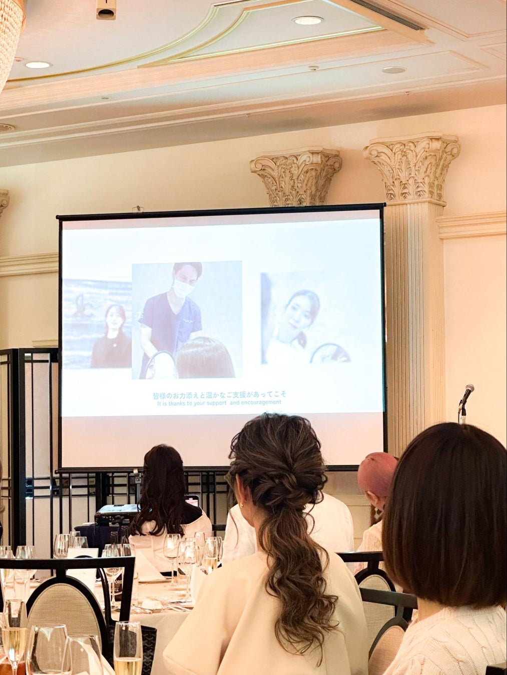 毎年、沙也加医師は全テーブルを巡り、THE ROPPONGI CLINICを支えてくださる皆さまに感謝の意を伝えます。この一年に一度の交流イベントでは、患者様の美に対する熱量やTHE ROPPONGI CLINICに対する愛を感じ、沙也加医師の頑張る糧に繋がっています。