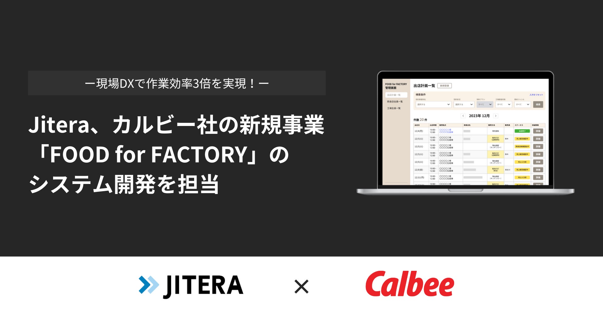 Jitera、食品大手カルビー社の新規事業「FOOD for FACTORY」のシステム開発を担当。現場DXで作業効率3倍を実現。
