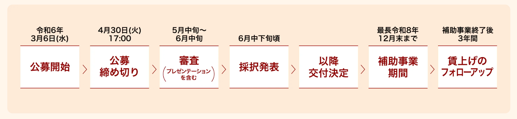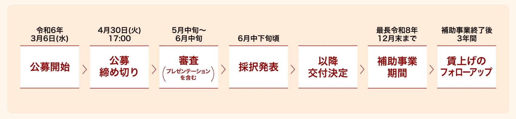 事業期間は、交付決定日から3年以内で最長2026年12月までを予定しております。事業期間とは採択後に、実際にその取組みを実施する期間です。