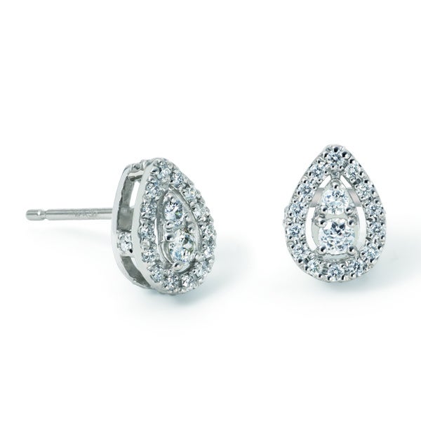 センターに輝く2石のダイヤモンドがまるで1粒の雫のようにきらめき、その周りを取り巻くメレダイヤモンドが、20周年にふさわしい輝きを添えます。ベーシックでエレガントに仕立てたピアスです。