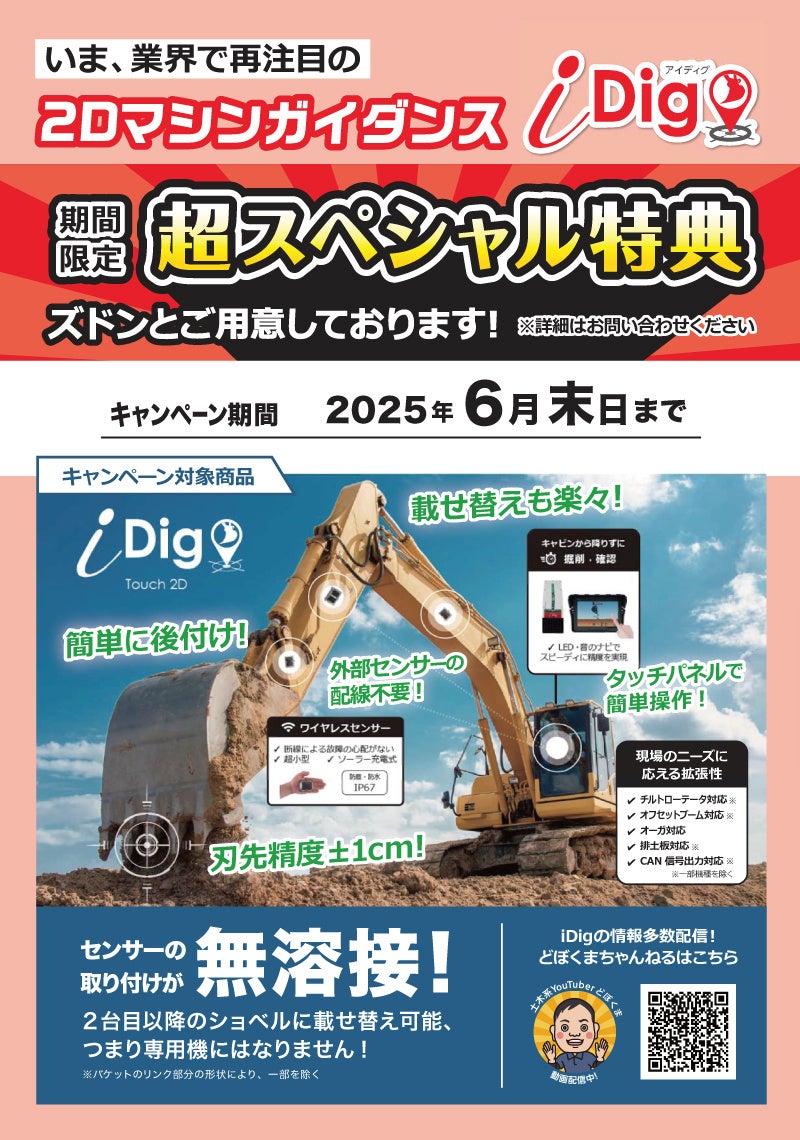 ~あらゆる油圧ショベルを精密マシンに変えるマシンガイダンスシステム『iDig(アイディグ)』など特別キャンペーンを2025年6月末まで開催~