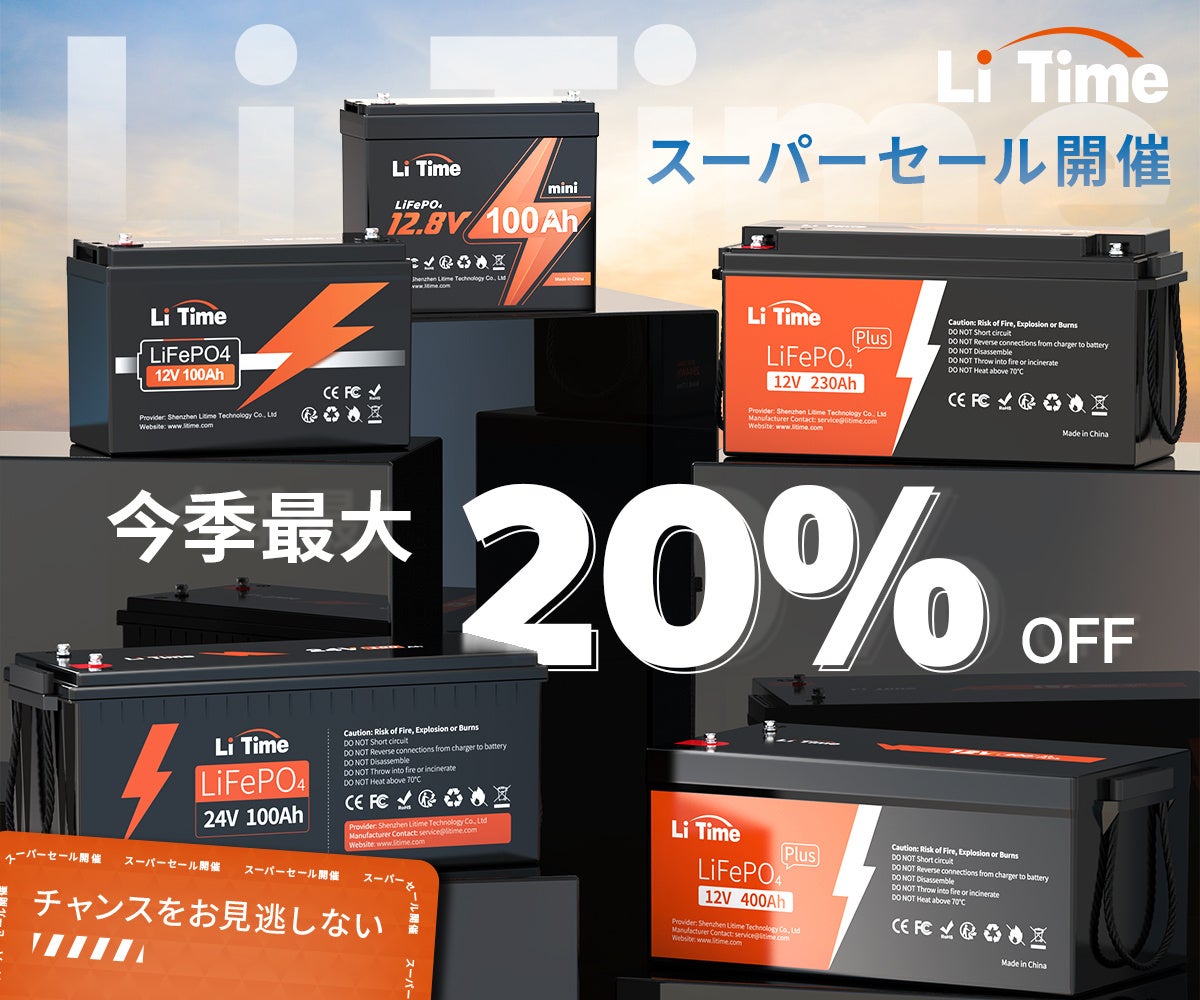 【楽天市場 X LiTime】楽天スーパーSALE期間中 最大20%OFF商品盛り!LiTimeリン酸鉄リチウムイオンバッテリーを超得で買うチャンス!