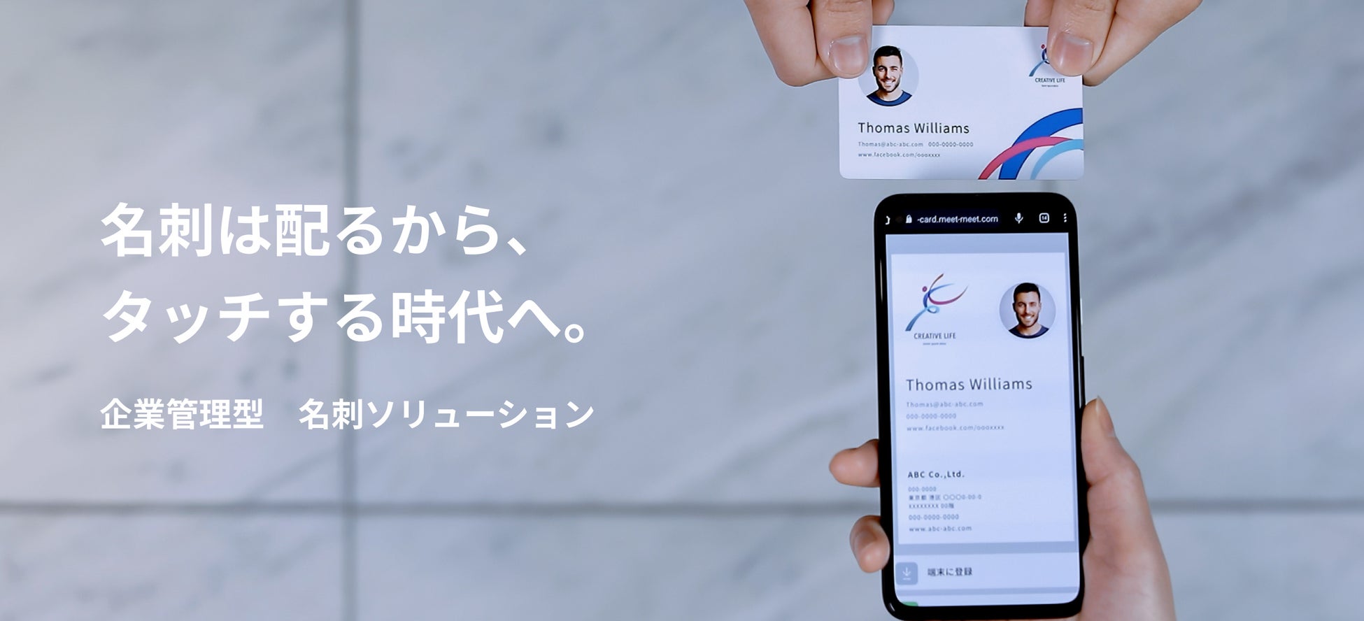 名刺は配るから、タッチする時代へ。MEETをかざすだけで名刺情報を相手のスマホに登録名刺へのアクセス数や登録情報も管理画面から企業別・部署別に閲覧可能