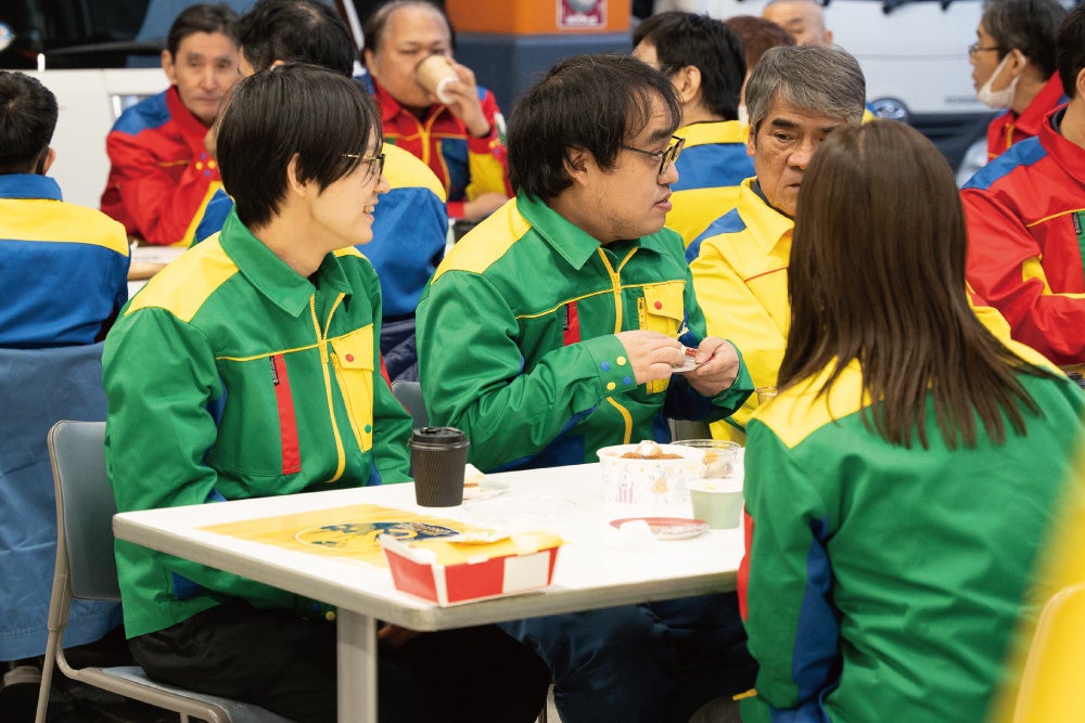 オールシーズン着用できるジャケットは、レッド、ブルー、グリーン、イエローの4色展開。ただカラフルなだけではなく、ユニフォームの色それぞれにチーム名があり、色分けの抽選によって着用するユニフォームのカラーが決まります。部署を超えたカラーという新しいチームが社内の部署を超えたコミュニケーションを生み出します。
