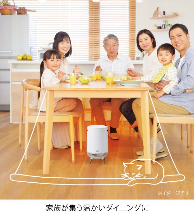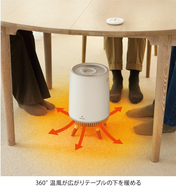 底冷えするダイニングの悩みを解決。360°温風が広がり『どこでもこたつ』になるヒーターが新発売。
