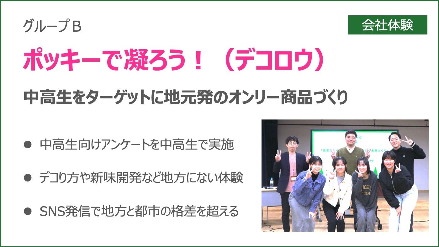ここで、高校生側からアイディアの方向性として、「学ぶ機会」「自然体験」「専門領域」「地域貢献」「会社体験」の5案が提示され、グループごとに方向性を決め、アイディアづくりがスタートしました。