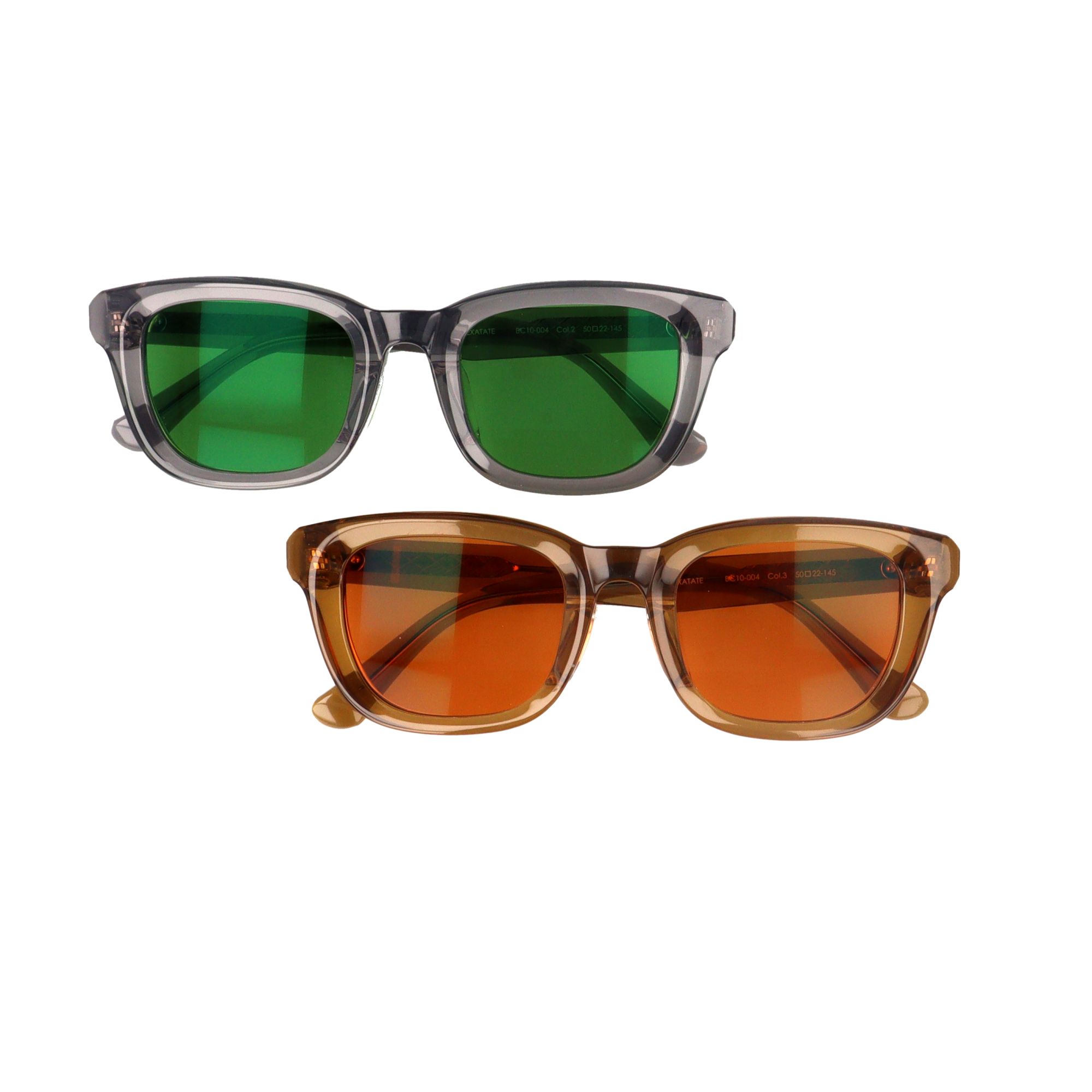 ヘキセテートは通常メガネフレームに使用されているアセテートに比べて軽く、薄く加工することが可能です。ヘキセテートを使用することにより、フレームが太くても軽やかな装着感を提供し、長時間の使用でも疲れにくいフレームを実現することができました。