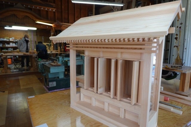 今年の卒業生は1名だったため、自身の細かい作業が得意な部分を活かしこのような神棚を制作しましたが、複数名いる時には合同の作品に取り組むこともあります。