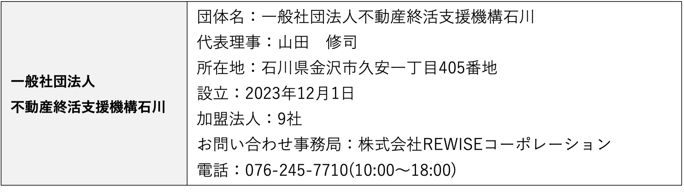 一般社団法人 不動産終活支援機構石川:加盟会員(会社・団体等) 9社