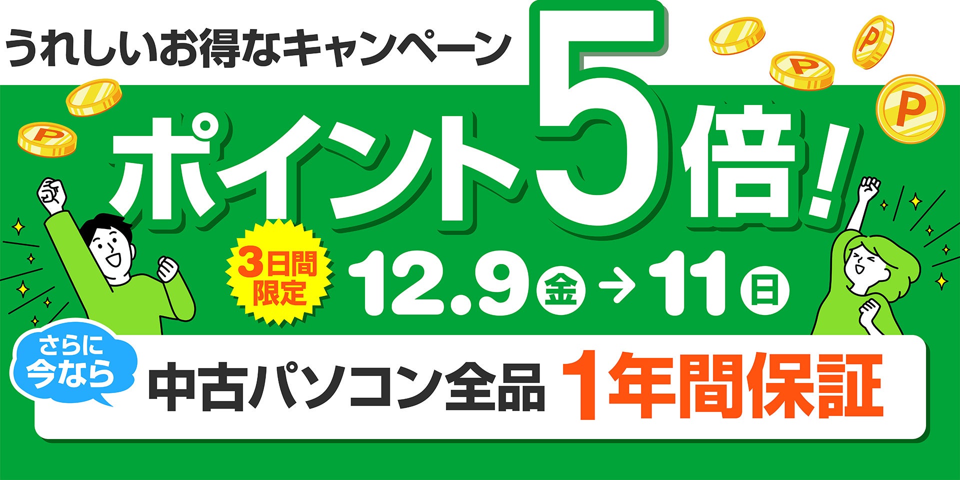 「パソコン市場」で全商品ポイント5倍キャンペーン実施中。12月9日から11日までの3日間限定