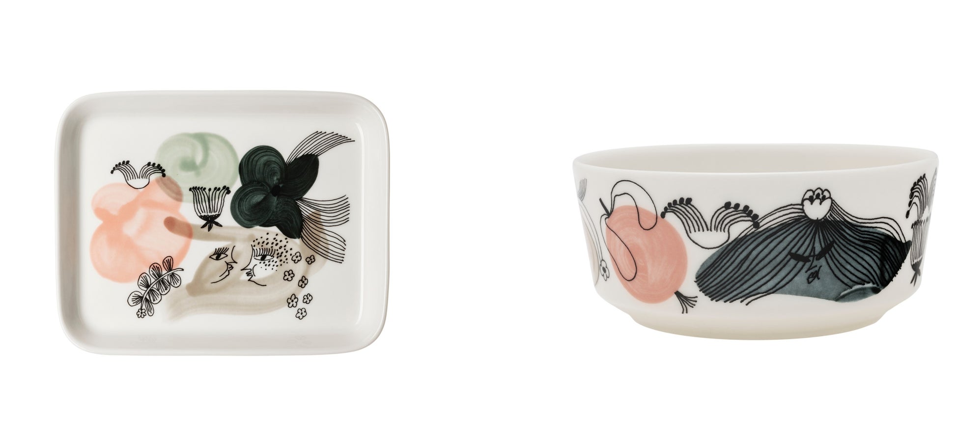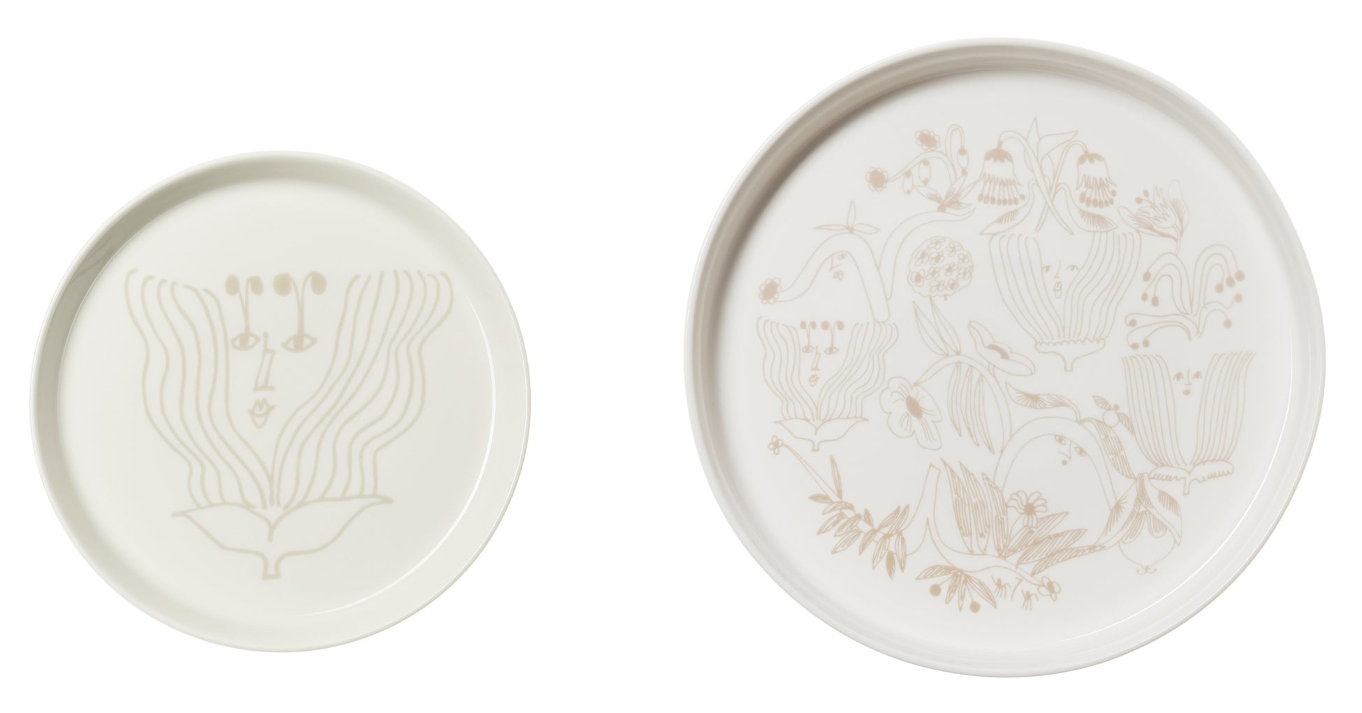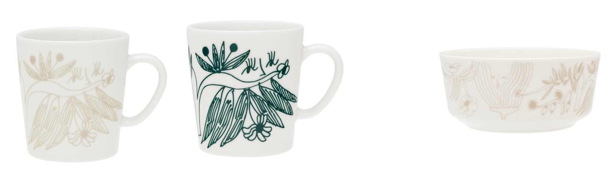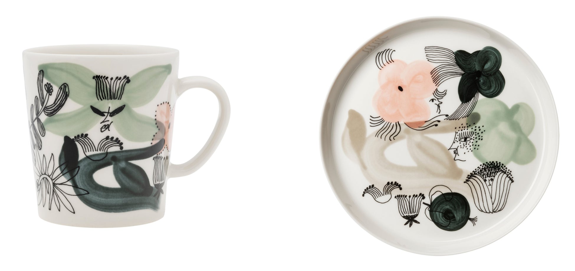 フィンランド建国100周年を記念して 2017年にスタートしたコレクション、ビーラブド・パターンズ。エステリ、パストラーリ、フヴィラ、エミリア、そしてプータルフリなどタイムレスに愛されるこのアラビアの定番コレクションに加わるのは、フィンランド人デザイナー、アルミ・テヴァによる新作 「クッカマー」(フィンランド語で「花園」)。水彩画のようなタッチのグリーンとピンクのカラーと手描きのラインで表現された花々、花のなかで様々な表情を覗かせるキャラクターたちが遊び心あふれるデザインです。