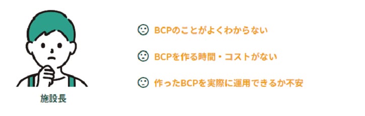 BCPとは (Business Continuity Plan)の略称で、業務継続計画ともいいます。介護事業所にとって、災害時においても出来る限り業務を止めることなく、限られた資源を活用してサービスを提供することは、利用者の生活を守る上で大変重要なことです。