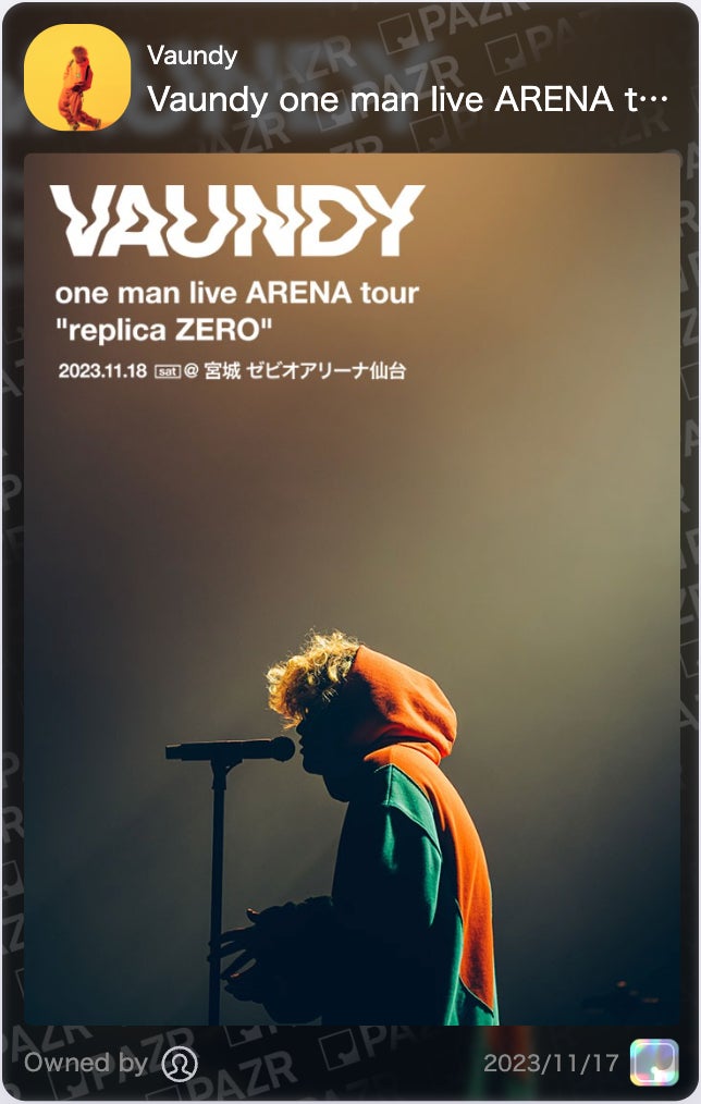ライフログSNS「PAZR(パズル)」がVaundyのワンマンアリーナツアー “replica ZERO” とVaundy 2ndアルバム「replica」リリース記念ライブにて来場記念ピースを配布