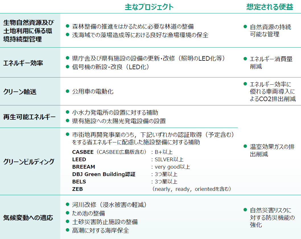 - グリーンボンドの目的・資金使途