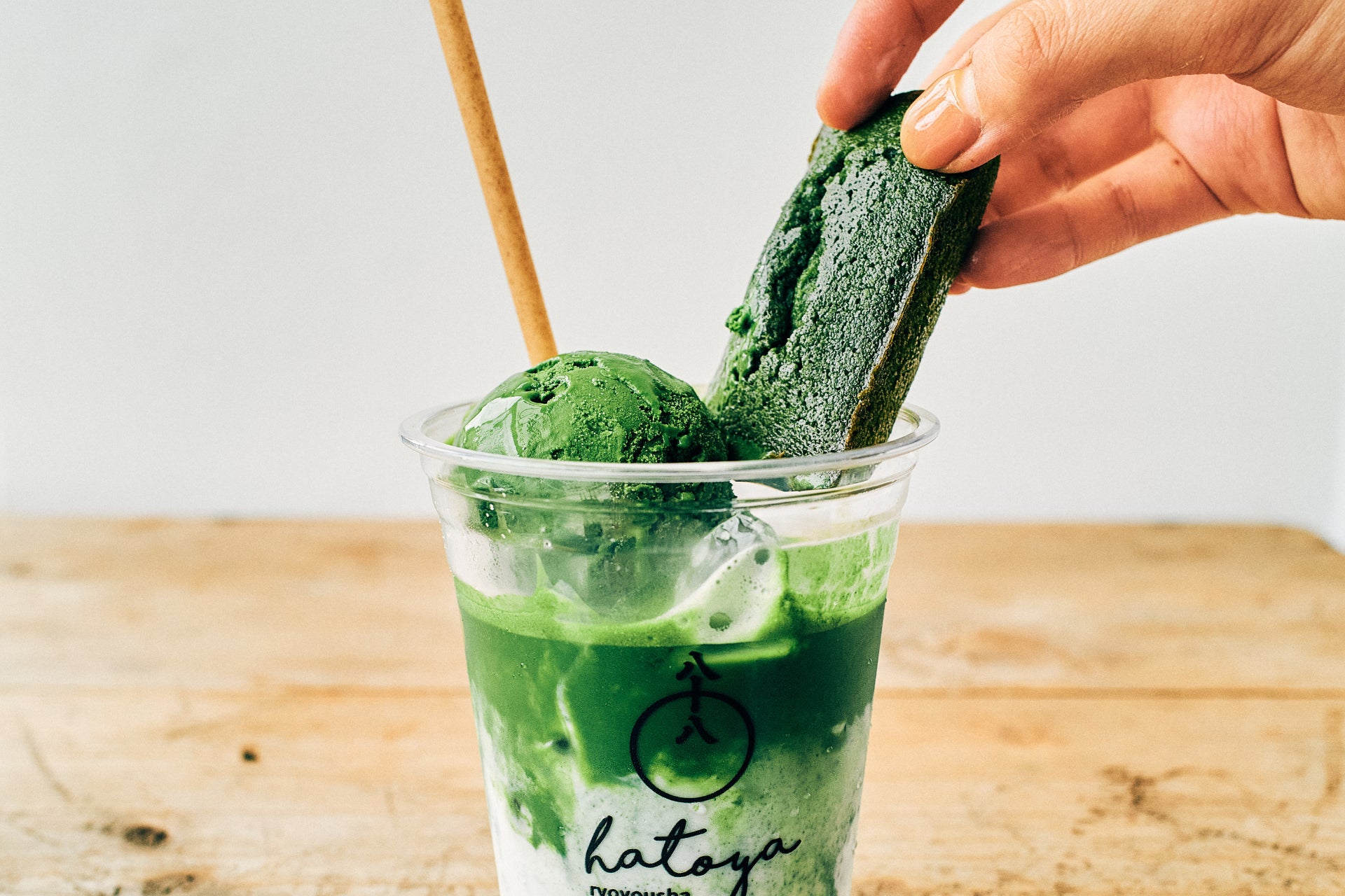 八十八良葉舎・八十八浅草で不動の人気を誇る「抹茶ラテフロート」も販売いたします。実演で作り上げる抹茶ラテに自家製アイスクリームを乗せました。ブレンドの抹茶を使用しており、苦味や旨みのバランスは奥行きのある味わいです。
