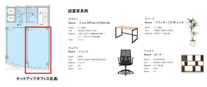予めオーナー側でオフィス什器を設置した状態で貸し出されるオフィスのことです。テナント様側のイニシャルコスト削減と、入居までの什器手配にかかる時間を圧縮できるというメリットがあります。また、退去時においても、既に設置されている什器を移設・破棄する必要がありませんのでエコで経済的です。