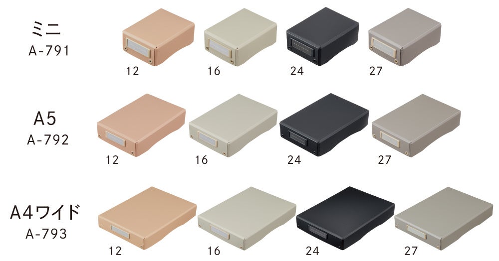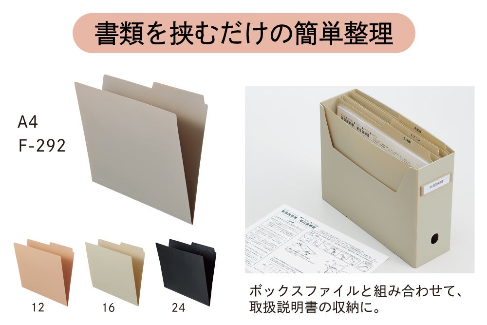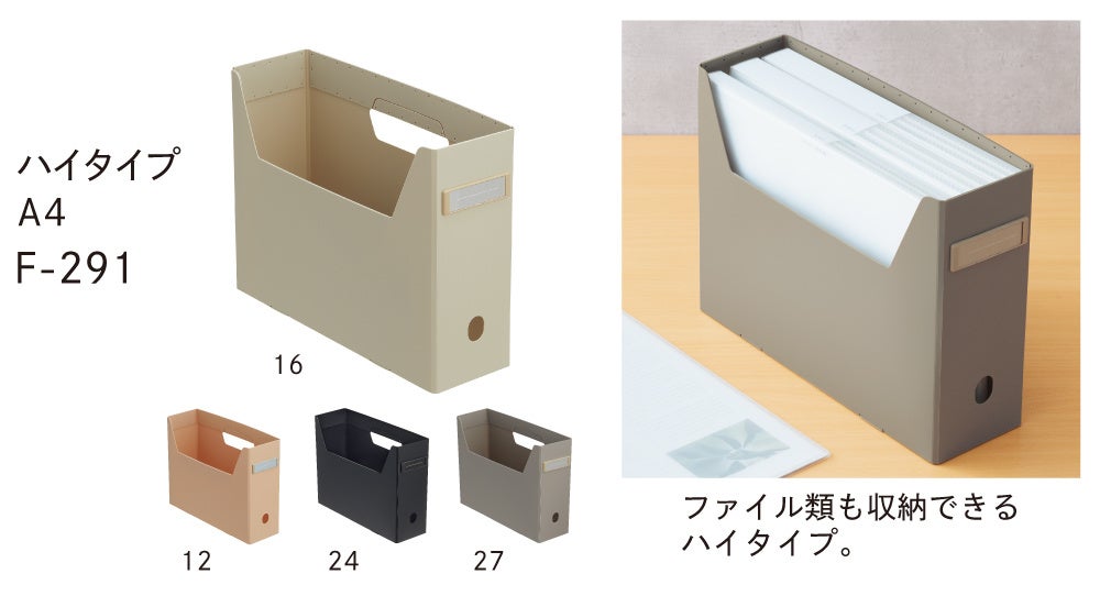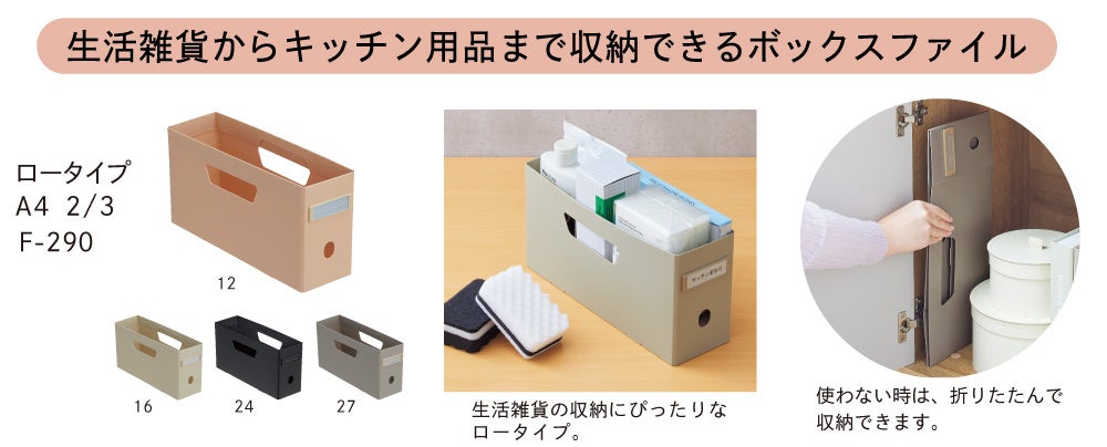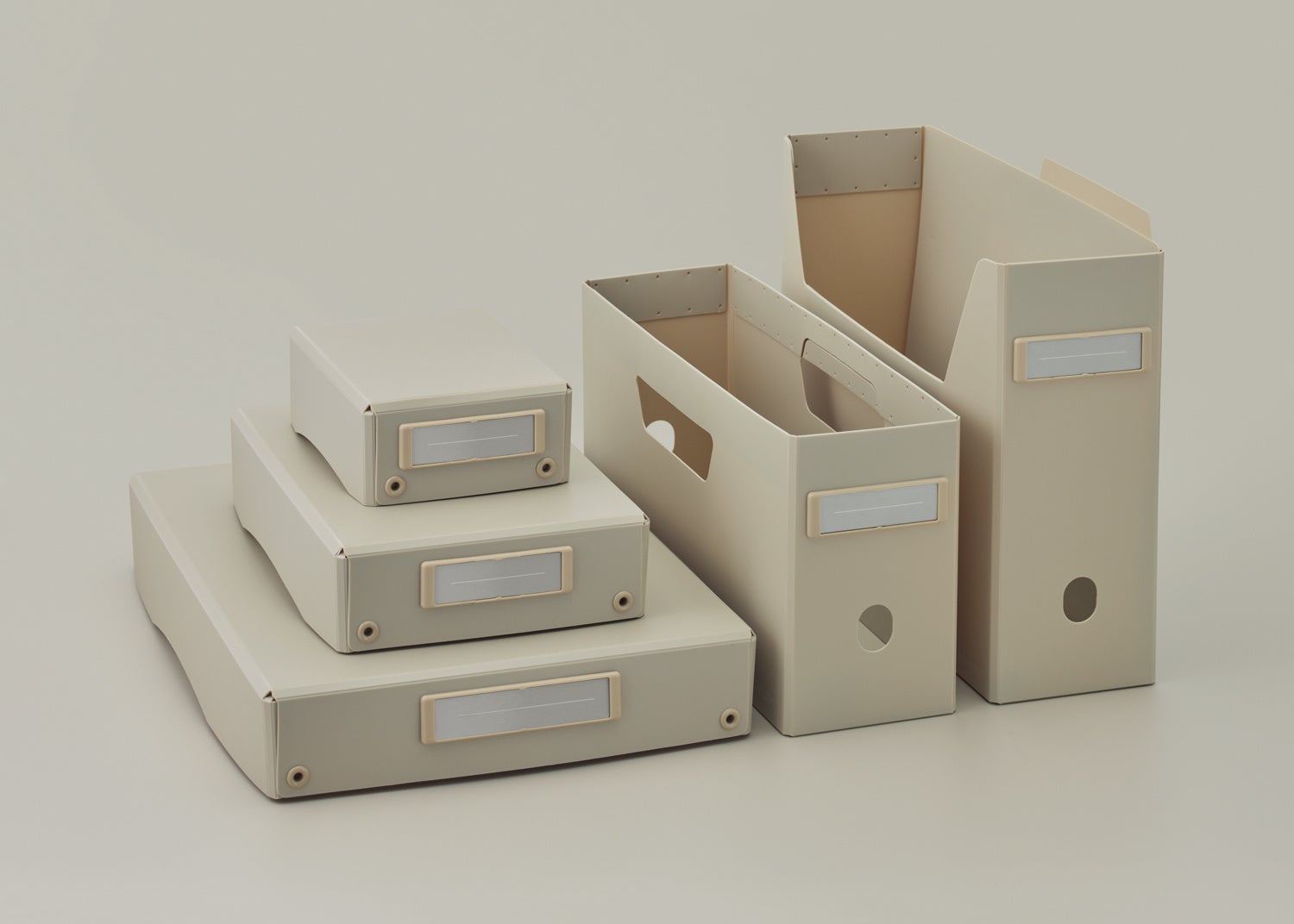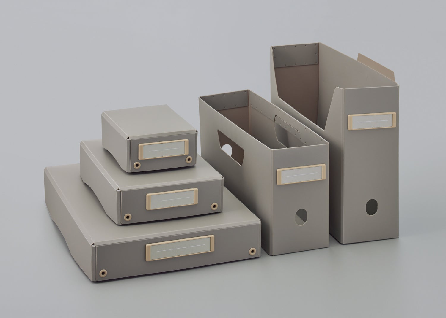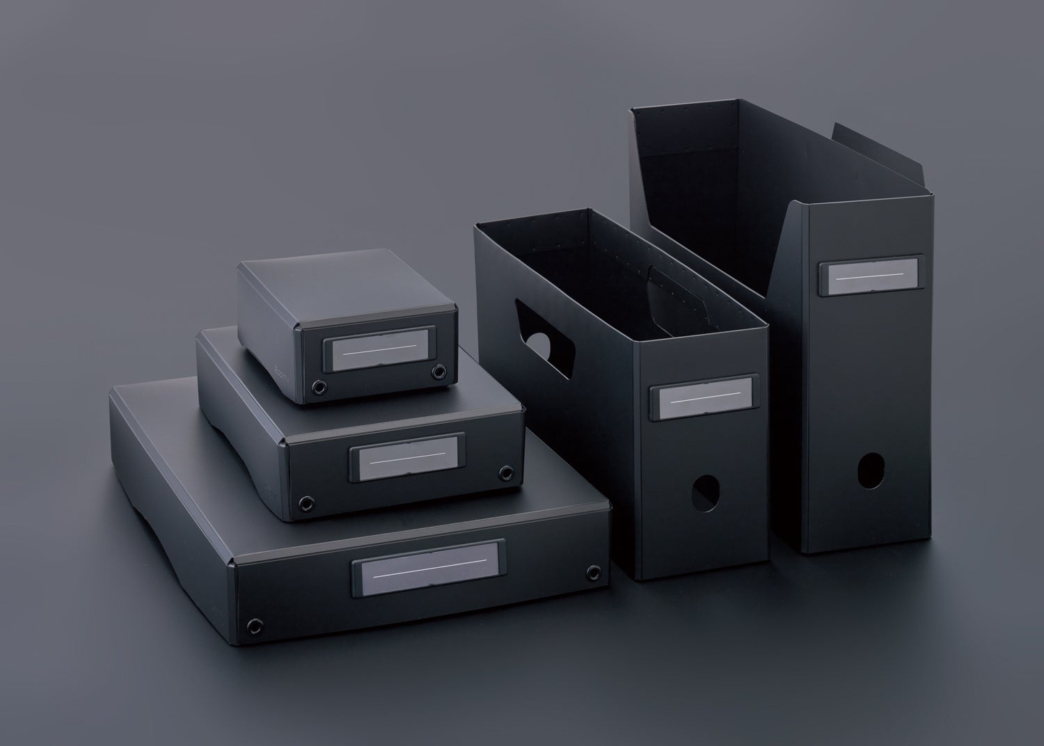 収納物に合わせて3サイズから選べるデスクトレーと自宅の書類管理に使用しやすい2サイズのボックスファイル、個別フォルダーをラインアップしました。