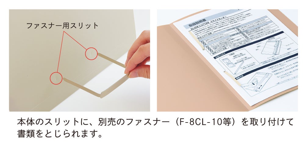 書類を挟んで収納できるインデックス付きのフォルダーです。ボックスファイルハイタイプ(F-291)と組み合わせて、簡単に書類を仕分け・分類することができます。また、本体に別売のファスナー(F-8CL-10等)を通すことができるスリットがあり、2穴パンチで穴をあけた書類をしっかり保管できます。