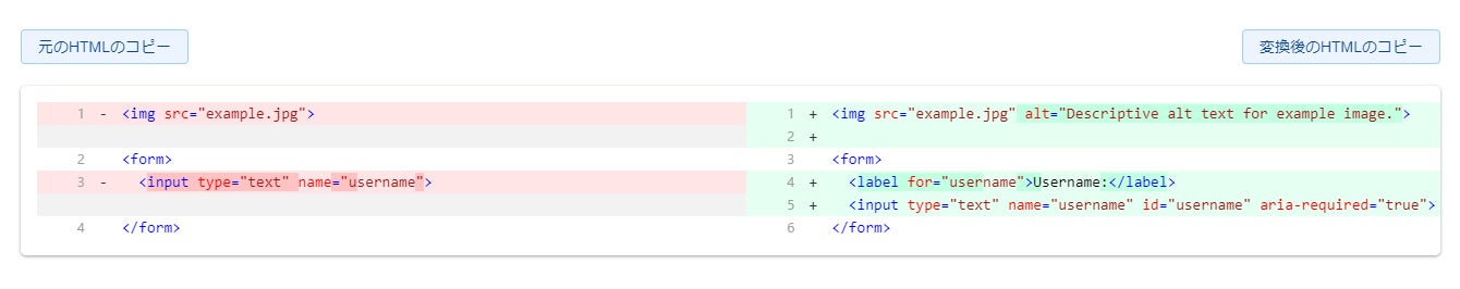 面倒なウェブアクセシビリティ対応を自動で行うことができ、例えば、画像に自動で代替テキストを追加したり、フォームやナビゲーション要素に必要なWAI-ARIA属性を自動で付与してくれます。