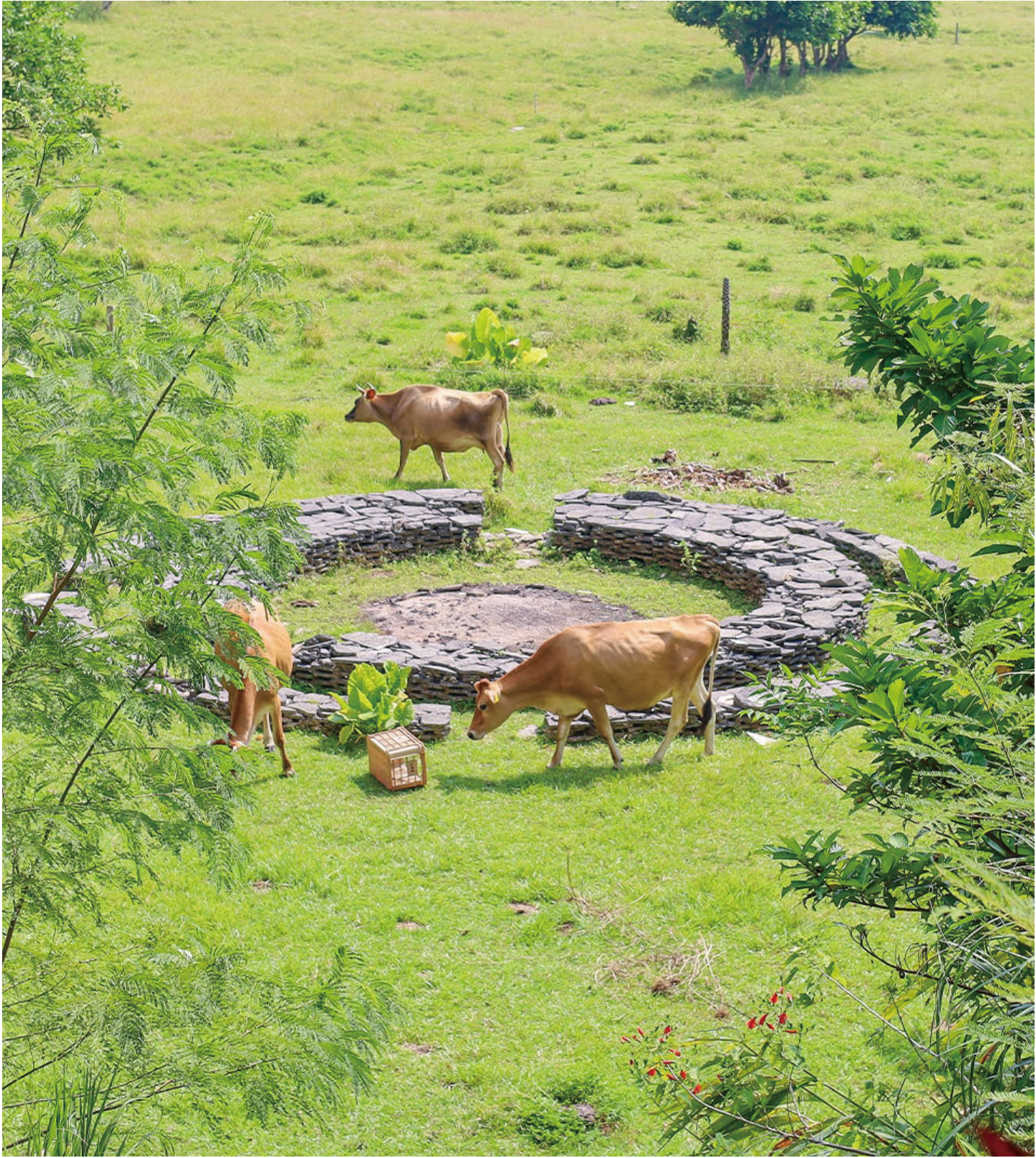 やんばるの大自然の中で“循環型放牧”を実践する農場の取り組みを紹介。希少な仔牛肉やジャージー牛の乳製品のほか、上質なビターハニーの生産などに取り組んでいる。