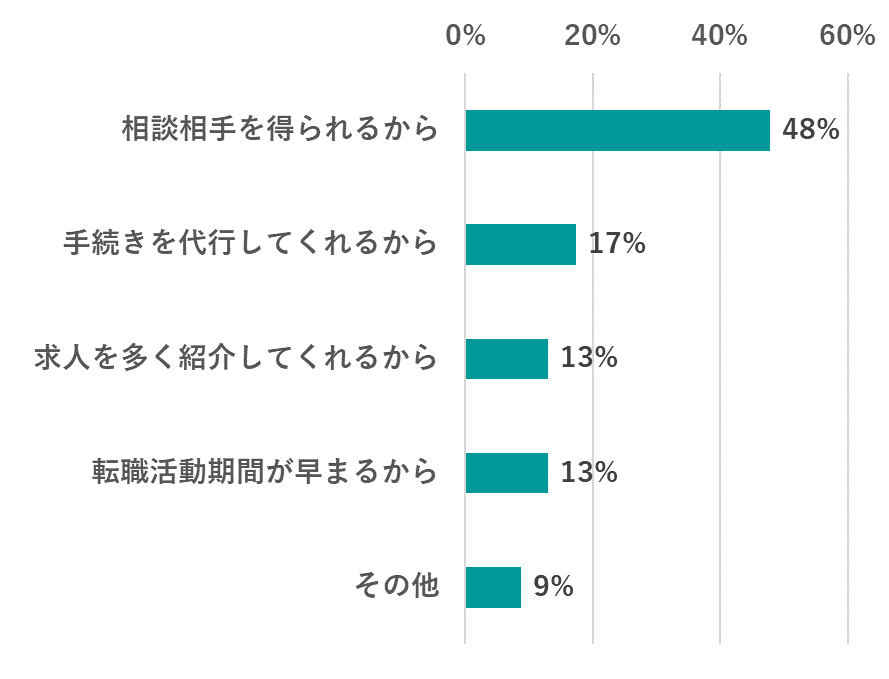 転職エージェントに任せるのが、自分でやるより楽だから。(40代 男性) |