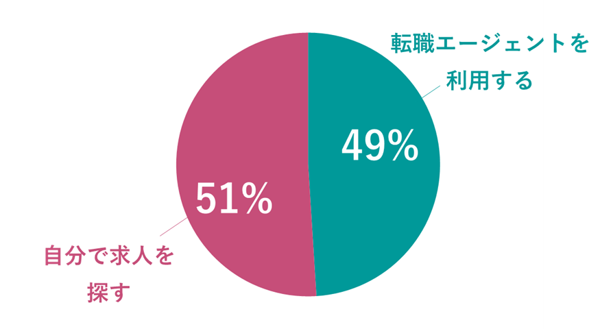 ●「転職エージェントを使う」派49%、「使わない」派51%