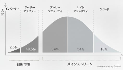 加えて、今後のショート動画やSNS市場が一過性のトレンド市場ではなく、今後は現在のアーリーアダプター層からキャズムを超えたマジョリティ層(※図1)にも広がっていく市場感を実感しており、3年かけて構築した低CAC×高LTVの事業モデル(※1,2)の土台が整った段階で、より指数関数的な成長を行う目的でM&A含めた外部との資本提携・協業など幅広い選択肢を模索しておりました。