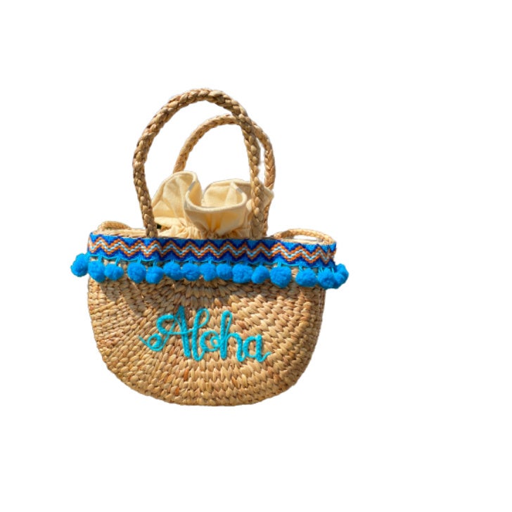 1点1点手編みしたかごに、華やかな刺繍をあしらっています。