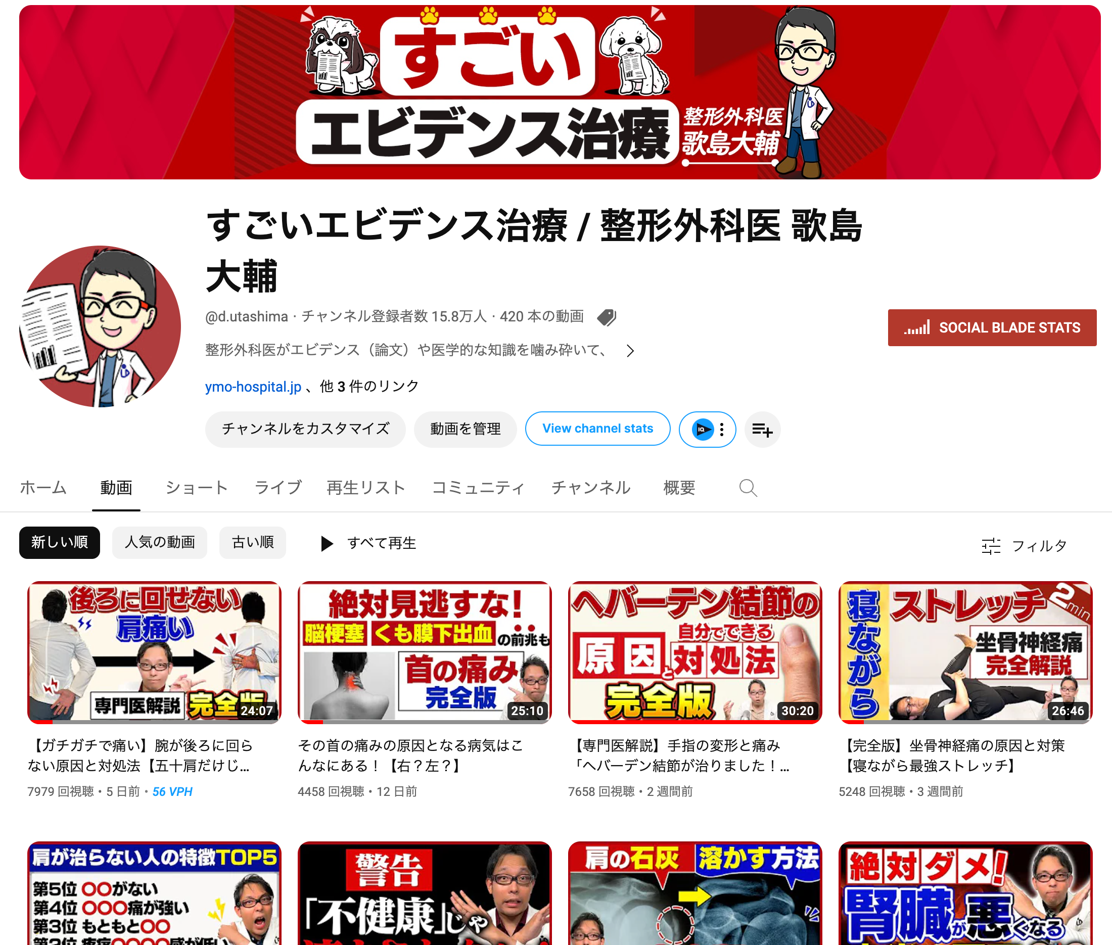 「すごいエビデンス治療 | 整形外科医 歌島大輔」は、健康・医療情報を学び実践するための現役医師によるYouTubeチャンネルです。
