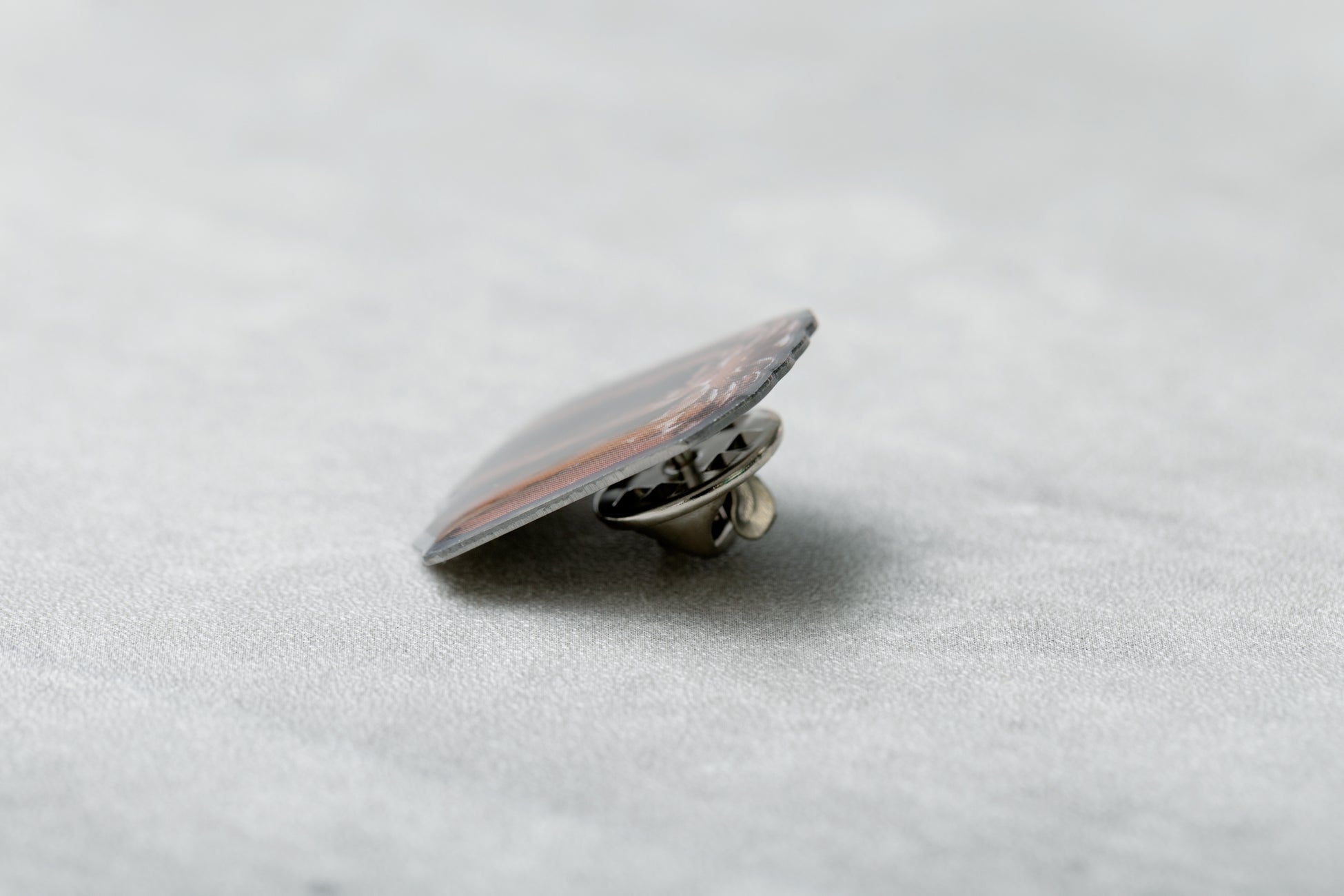 カヌレの形状をした、親指ほどのサイズのピンバッジです。