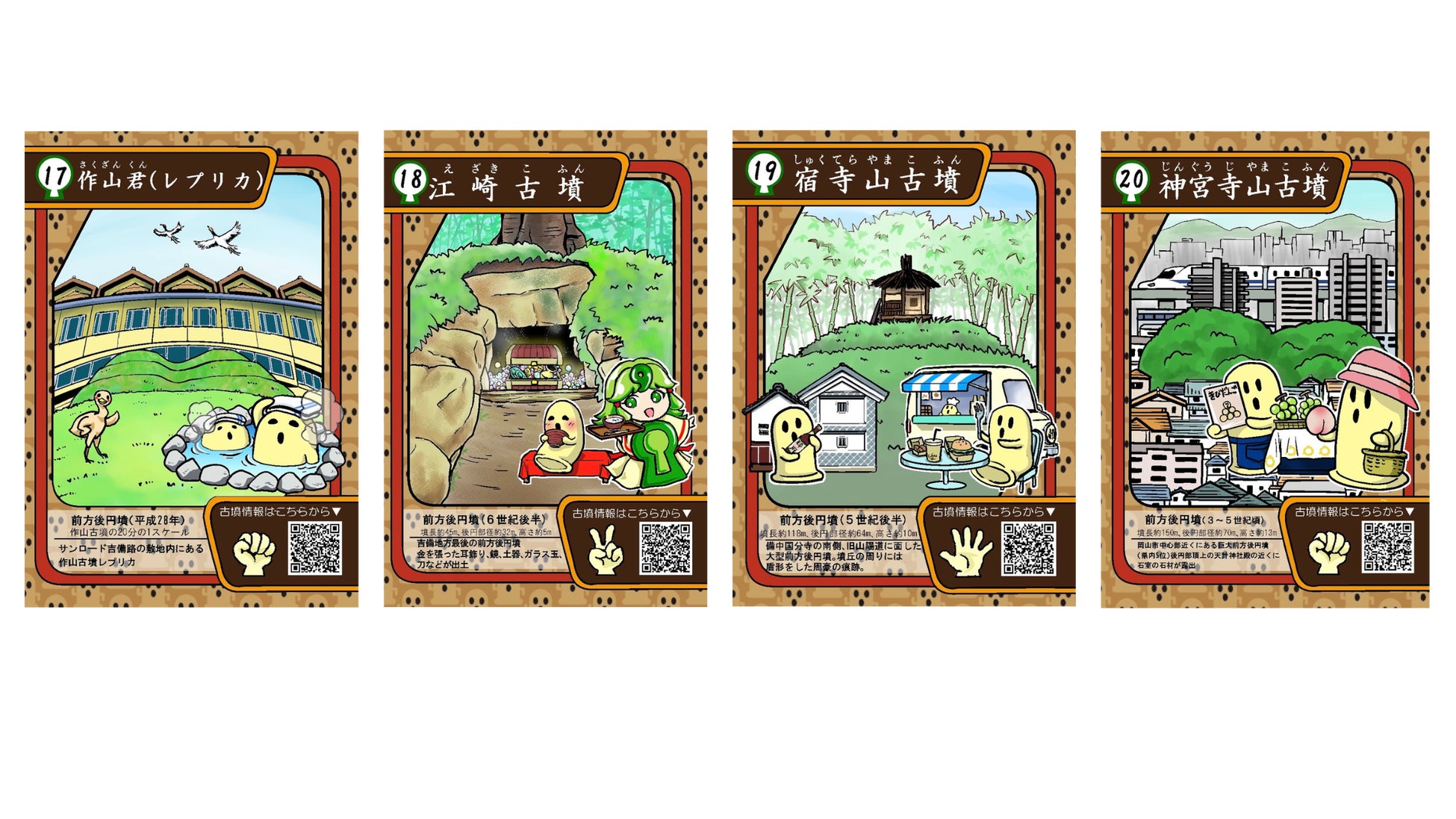 古代吉備王国の古墳巡りへ誘うトレカ「こふん王国の古墳カード」に新カードを追加!取扱店限定のレアカードも登場!