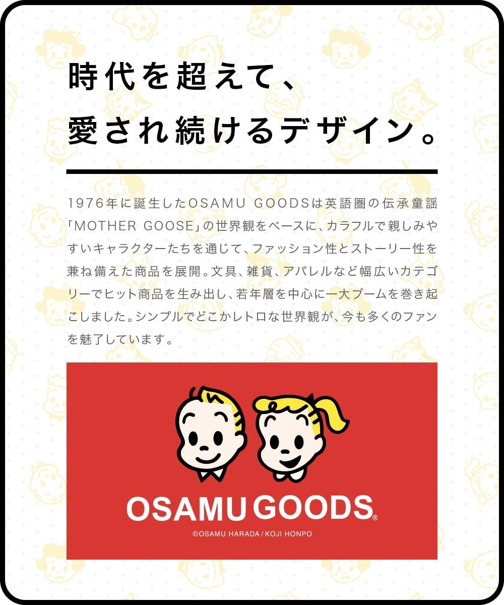 1976年に誕生したOSAMU GOODSは英語圏の伝承童謡「MOTHER GOOSE」の世界観をベースに、カラフルで親しみやすいキャラクターたちを通じて、ファッション性とストーリー性を兼ね備えた商品を展開。文具、雑貨、アパレルなど幅広いカテゴリーでヒット商品を生み出し、若年層を中心に一大ブームを巻き起こしました。シンプルでどこかレトロな世界観が、今も多くのファンを魅了しています。
