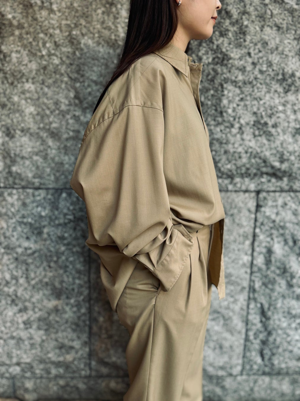 有楽町店リニューアルオープン記念限定アイテムとして、定番の生地をウォッシャブルウールに変更し、上品なカラーで展開した「DADDY SHIRT」と「CHRYSLER PANTS 」をご用意しております。