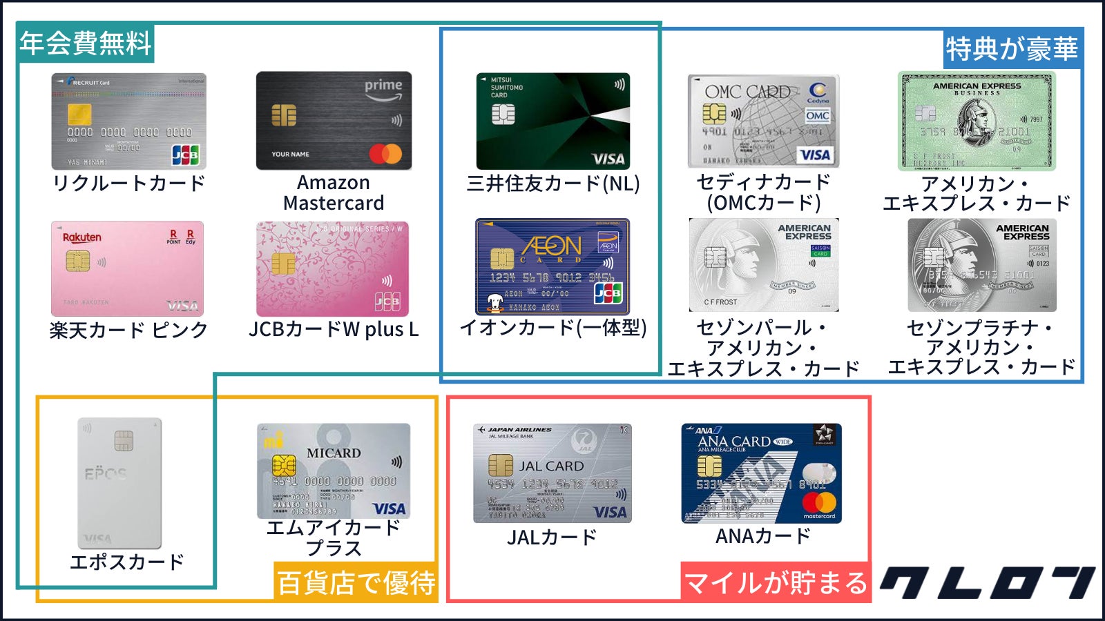 それぞれの特徴に応じて最もお得なクレジットカードを選ぶことができます。