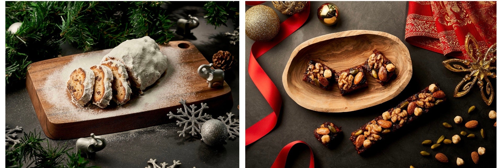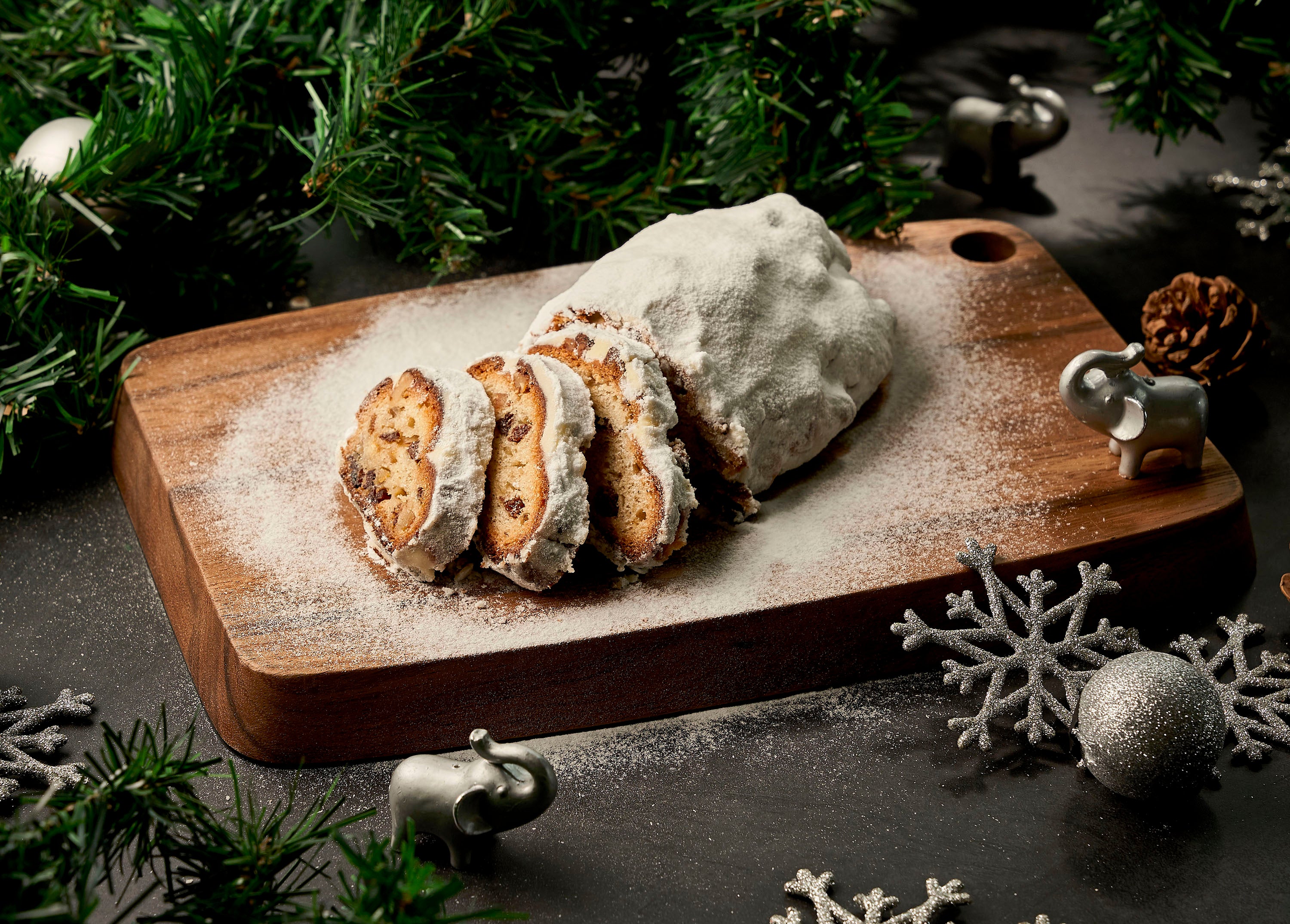 焼き菓子を担当するのは、ホテル内のレストランやクラブラウンジで提供するパンや焼き菓子を監修する村上 昇三ベーカリーシェフ。村上は25年以上に渡り、ラグジュアリーホテルでのパン製造やメニュー開発に携わってきました。パンの発酵と熟成をコントロールし、うまみを最大限引き出すことを得意としています。フェスティブシーズン限定で登場するシュトーレンやベラベッカは、素材本来の美味しさと村上独自のエッセンスを加えたこだわりを感じていただけます。