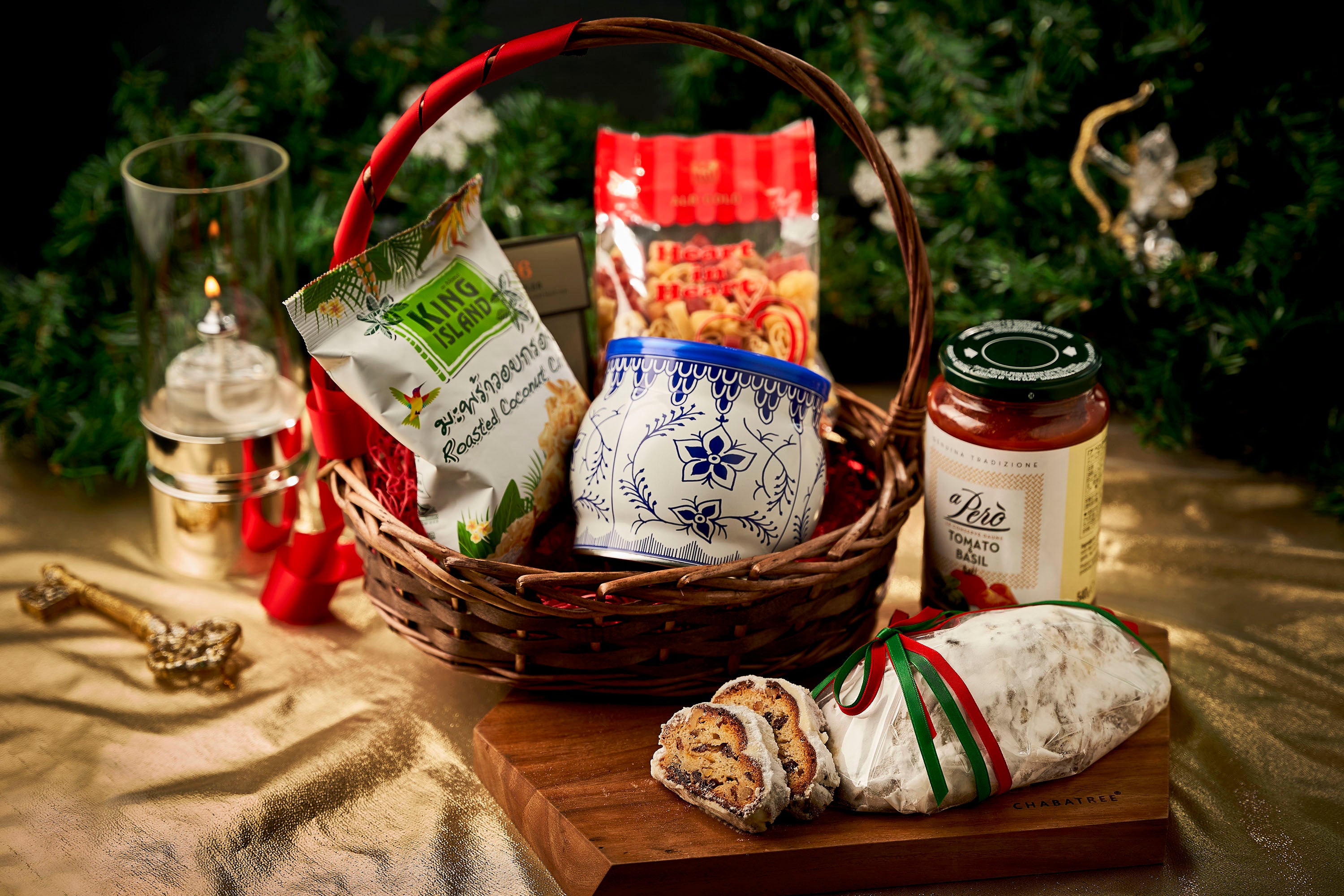 ハンパーとは、バスケットに食べ物や飲み物を詰めたもので誕生日や特別な日の贈り物としてイギリスで誕生しました。センタラが贈るハンパーは、ホリデーシーズンならではのアイテムやホテルメイドのシュトーレン、そしてタイを感じる食材が一度に楽しめるスペシャルセット。食卓を華やかに彩るハンパーは、クリスマスパーティーの手土産としてもおすすめです。