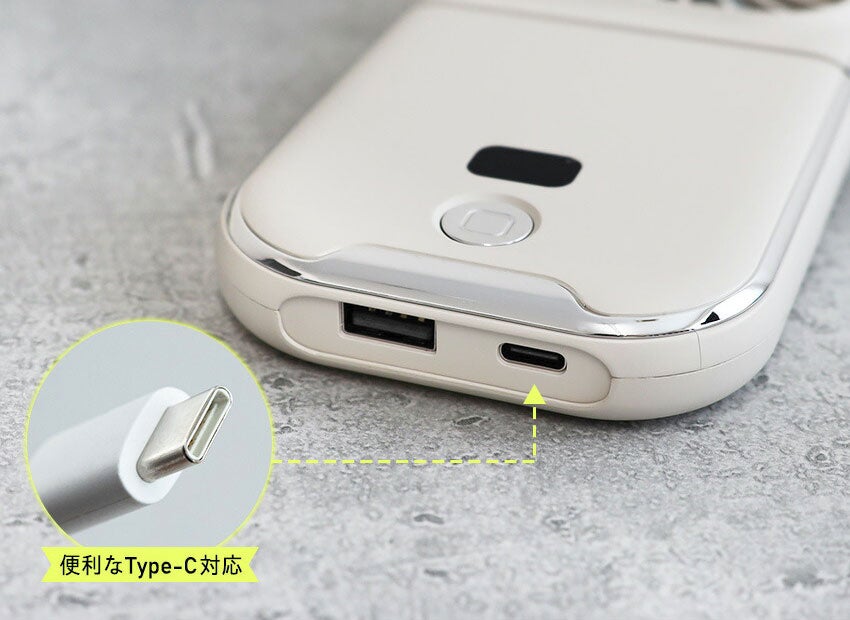 他デバイスやモバイルバッテリーとも併用しやすいType-C端子の充電口。
