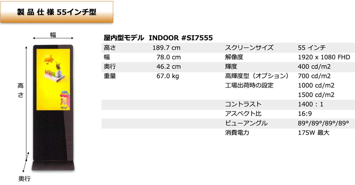 尚、AIカメラ内蔵55型デジタルサイネージ、「サイネージ・アイ®️ 」本体は無償提供ですが、装置の輸送費用、設置費用は別途必要です。またAIソフトウェアの利用を含んだクラウドサービス利用費用は別途必要になります。現在1万円/台・月(税別)を予定しています。