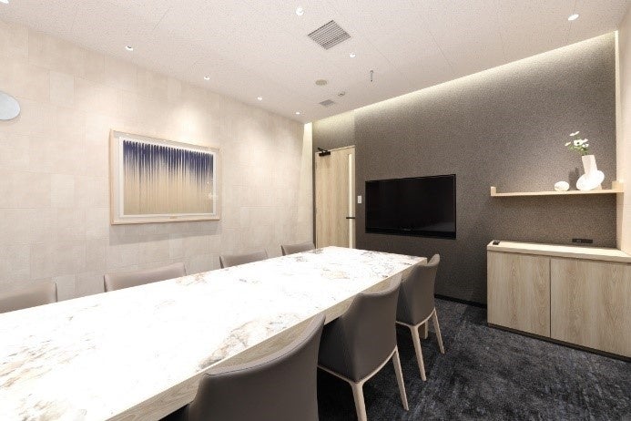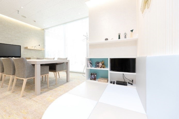 売買・賃貸併設店舗としてお客様の接客を行うべく、応接室は現状の2部屋から4部屋に増設し、新しくキッズスペースを設置いたします。また、コロナ禍を経て、非対面で場所に捉われずに接客できるオンライン専用ブースを2箇所設置いたしました。海外を含め遠方にお住いの方や移動が困難な方との接客、オンライン接客を希望されるお客様への対応や社員のオンライン研修など、オンラインニーズの高まりに対応いたします。これにより、移動時間の削減や時間と場所に捉われない働き方に取り組み、生産性向上を目指します。