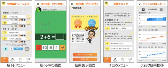 そのほか、学科の勉強中など脳トレ以外の様々な場面で脳活動をチェックすることができる「合格脳チェックメーター」や、脳科学の知見から偏差値アップに繋がる方法やヒントを伝える動画やコラムなどもアプリの機能として提供します。