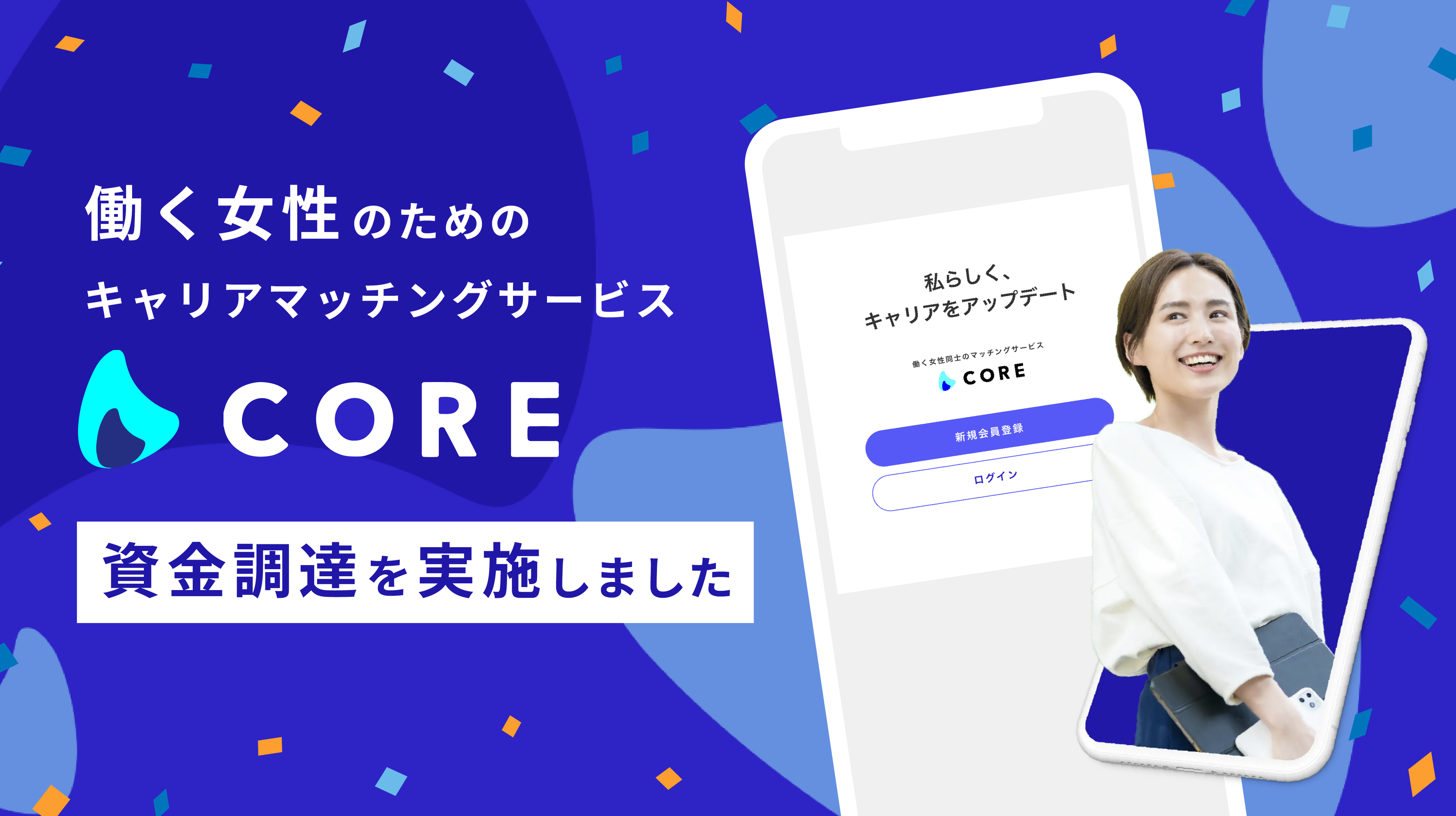働く女性のためのキャリアマッチングサービス「CORE」を展開する株式会社COREが、資金調達を実施