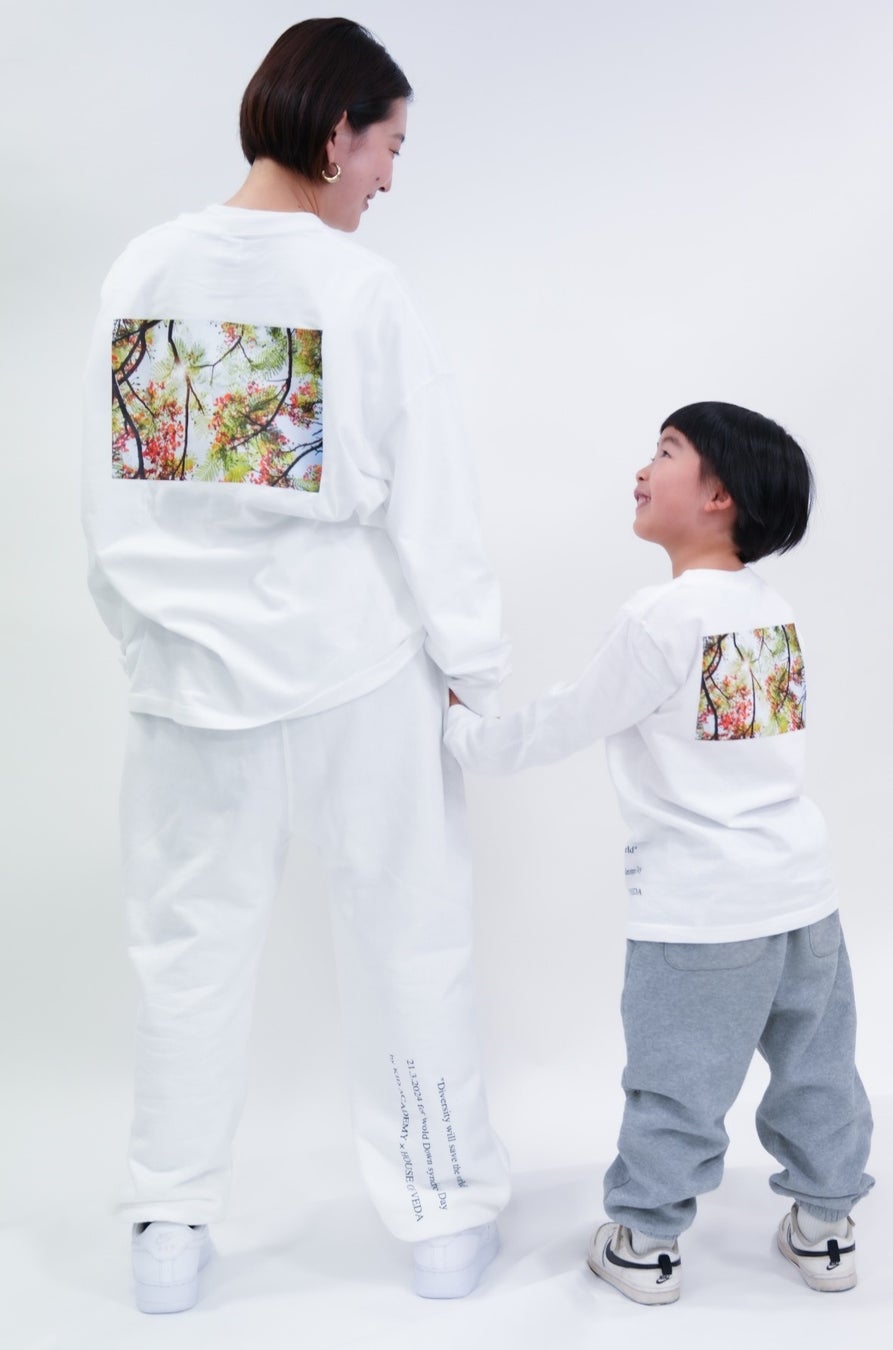 「KID ACADEMY」と「House Of Veda」でデザインした親子ウェアには、世界を救い幸福をもたらすと信じるキーワード“Diversity(多様性)”を用いたメッセージを英文でプリントしています。あわせて、親子が共に健やかに成長していく未来をイメージしたネイチャーフォト(撮影:Sho Kawai)をプリントしています。「KID ACADEMY」と「House Of Veda」の願いや期待、夢をデザインに落とし込みながら、可愛らしさに加えて着やすく動きやすさも実現したウェアに仕上がっています。