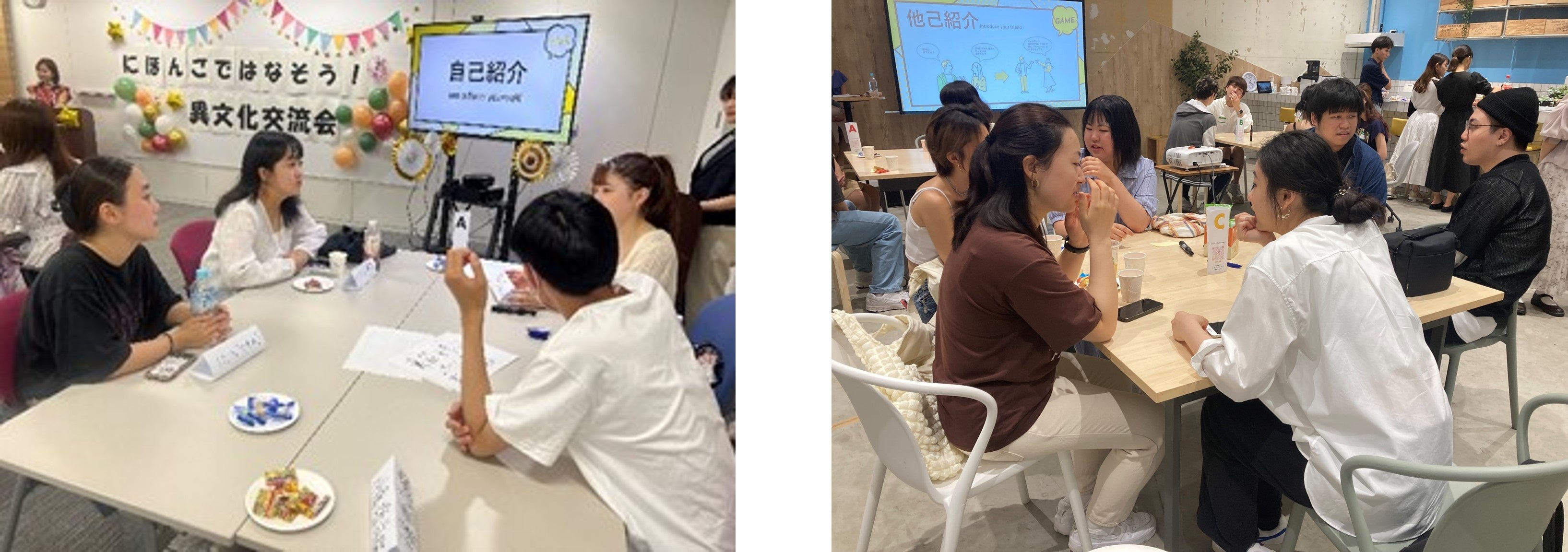 初対面の多国籍の学生同士で、最初の自己紹介は緊張とともに始まりましたが、時間が経つにつれ、学校や趣味の話が広がり、賑やかな交流会になりました。