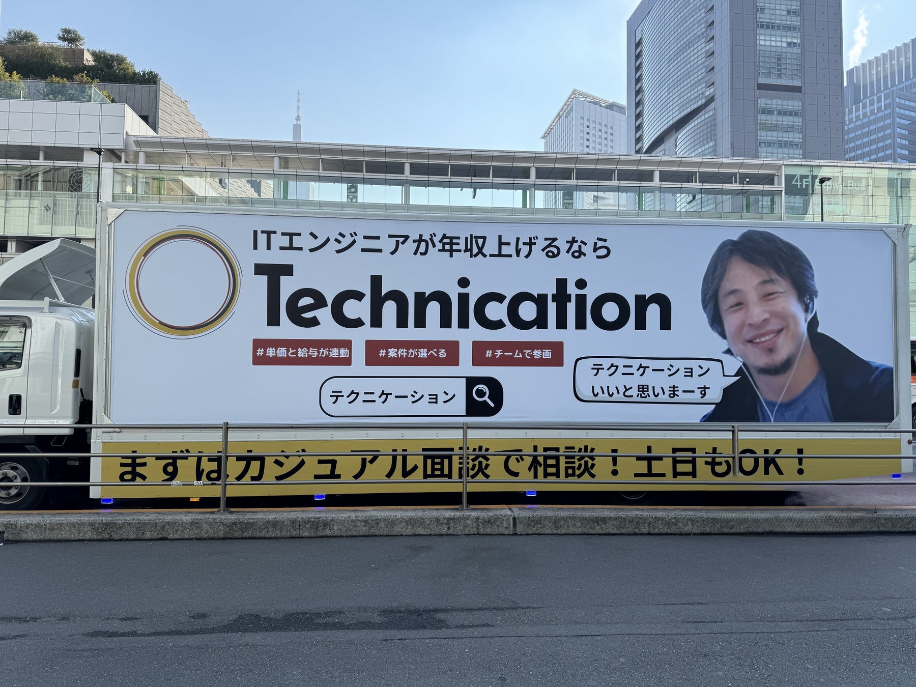 株式会社テクニケーション(本社:東京都新宿区、代表取締役:西田 拳、以下 当社)は、2025年1月20日(月)から7月18日(金)の期間、新宿・秋葉原・渋谷・池袋でひろゆき氏とコラボしたアドトラックを走行させます。これによりさらなる認知度の向上を図り、採用力の強化につなげてまいります。