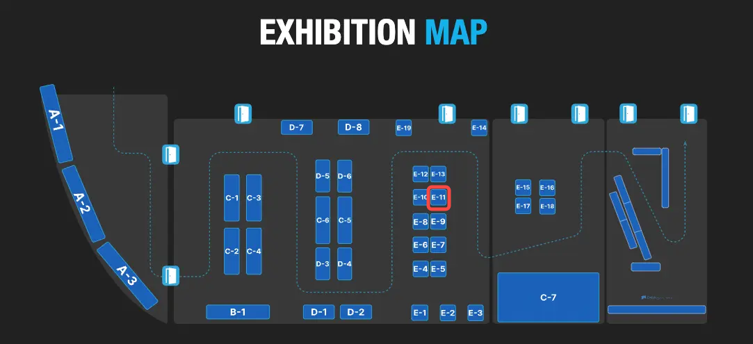 場所はマップに示してある通り、「E-11」に出展いたします。