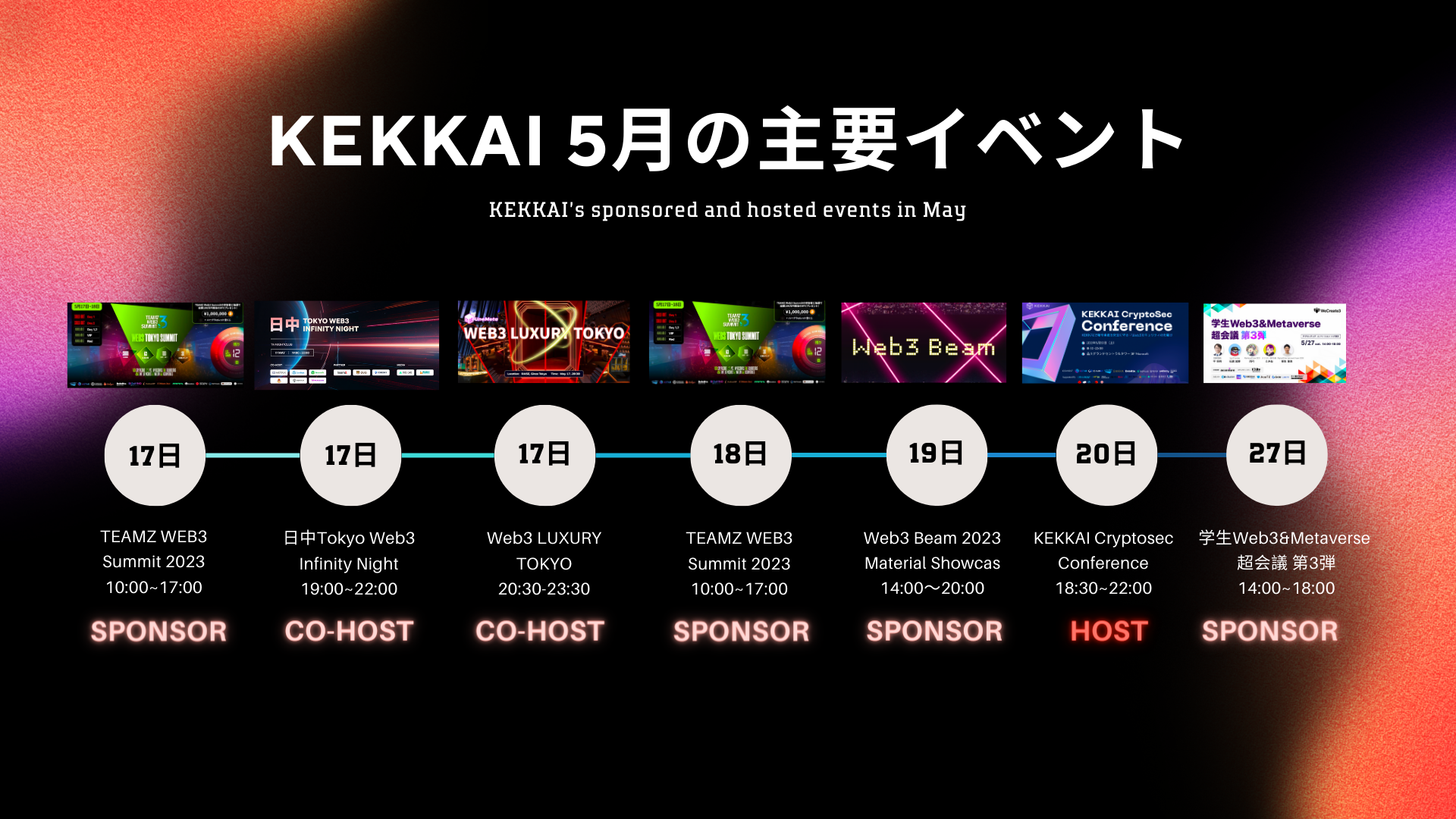 また、KEKKAIは「TEAMZ Web3 Summit」と「KEKKAI Cryptosec Conference」以外にもいくつかのイベントへ共同開催企業・スポンサー企業として参加予定です。