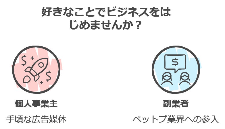 個人事業主でも副業の方でも安心!ペット特化型ビジネス宣伝が可能に。