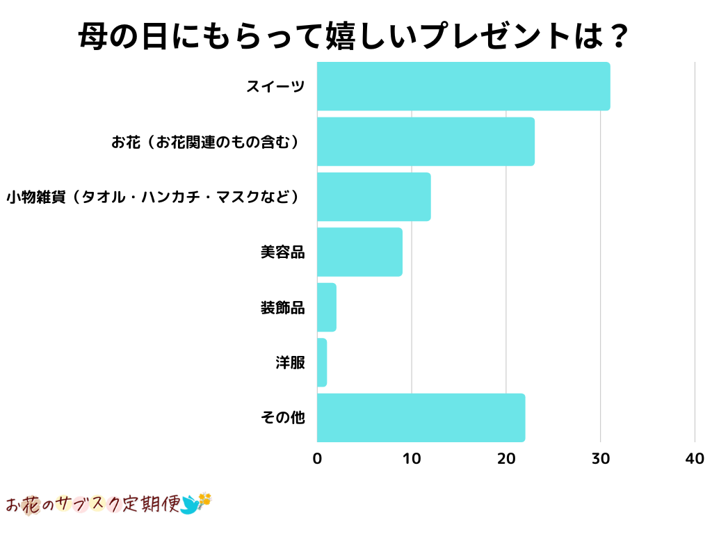 【調査レポート】母の日にもらって嬉しいプレゼントを教えてください。1位は『スイーツ』でした!